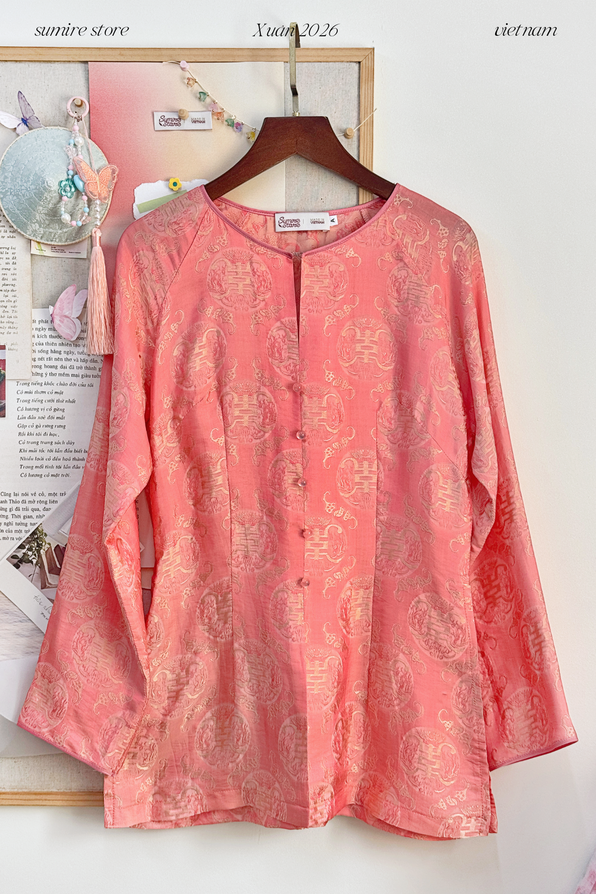 Mang theo niềm say mê thiết kế ra những bộ trang phục cách tân & phụ kiện thủ công ứng dụng nhưng vẫn giữ được những nét đẹp của trang phục truyền thống và hoa văn Việt Nam, Sumire Store hy vọng rằng sự kết hợp giữa truyền thống và hiện đại trong các sản phẩm của chúng tôi sẽ góp phần tạo thêm niềm vui và sự duyên dáng cho phong cách riêng biệt nơi bạn.