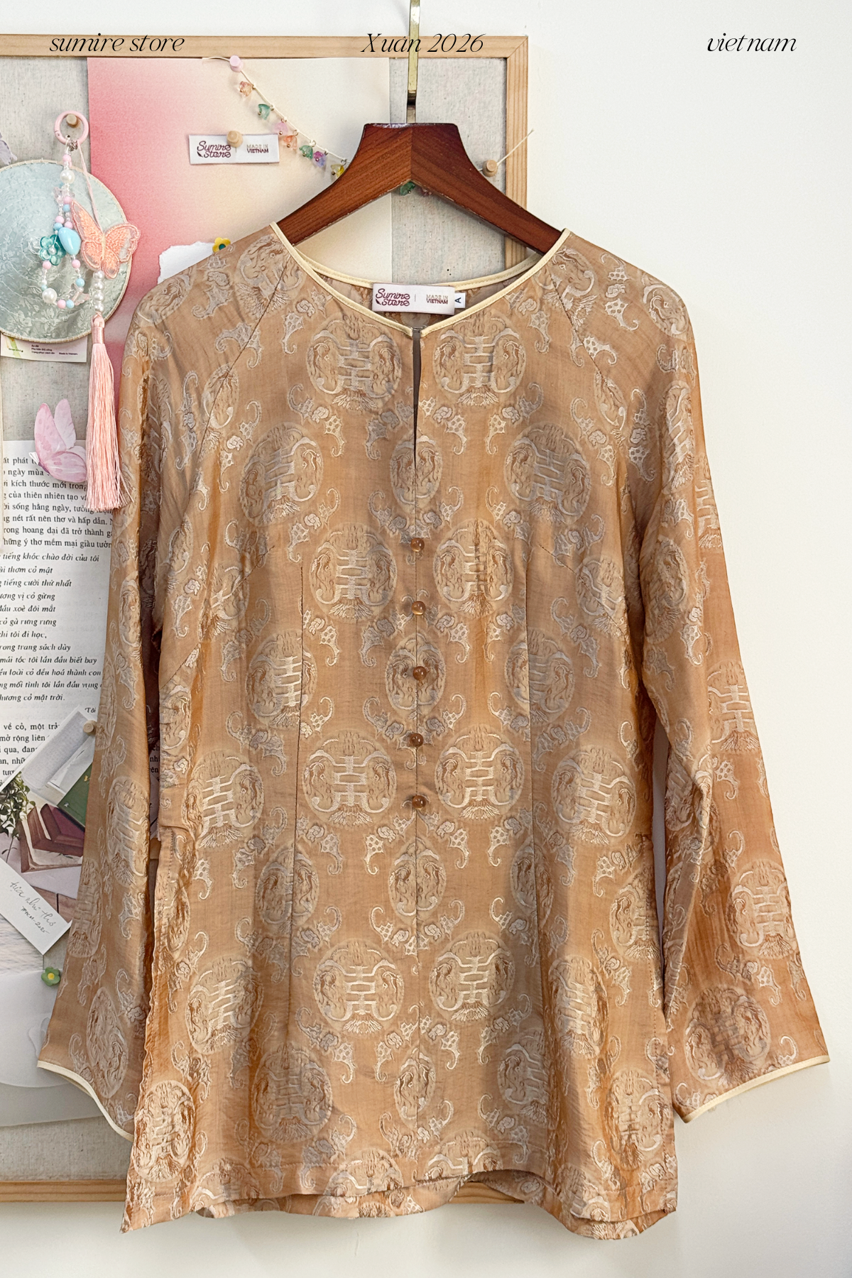 Mang theo niềm say mê thiết kế ra những bộ trang phục cách tân & phụ kiện thủ công ứng dụng nhưng vẫn giữ được những nét đẹp của trang phục truyền thống và hoa văn Việt Nam, Sumire Store hy vọng rằng sự kết hợp giữa truyền thống và hiện đại trong các sản phẩm của chúng tôi sẽ góp phần tạo thêm niềm vui và sự duyên dáng cho phong cách riêng biệt nơi bạn.