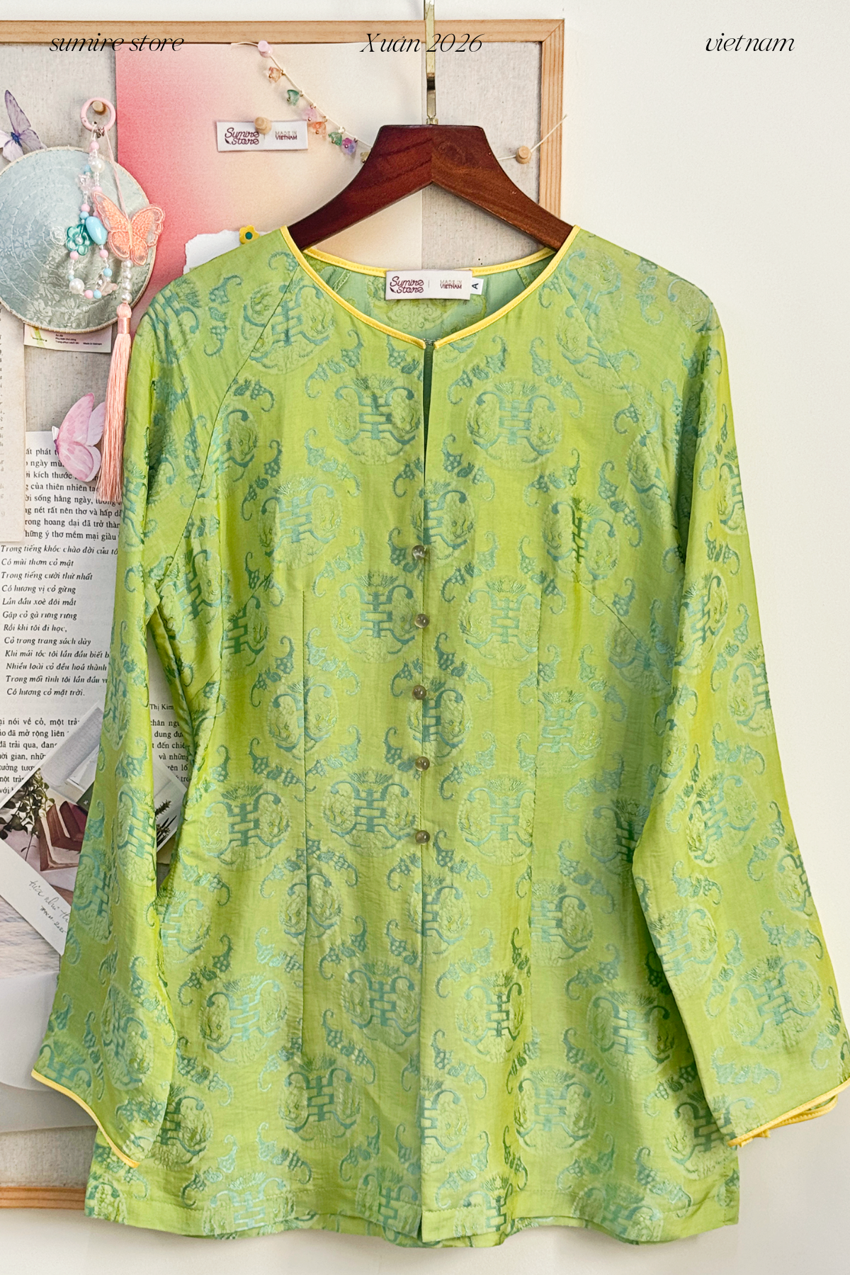 Mang theo niềm say mê thiết kế ra những bộ trang phục cách tân & phụ kiện thủ công ứng dụng nhưng vẫn giữ được những nét đẹp của trang phục truyền thống và hoa văn Việt Nam, Sumire Store hy vọng rằng sự kết hợp giữa truyền thống và hiện đại trong các sản phẩm của chúng tôi sẽ góp phần tạo thêm niềm vui và sự duyên dáng cho phong cách riêng biệt nơi bạn.