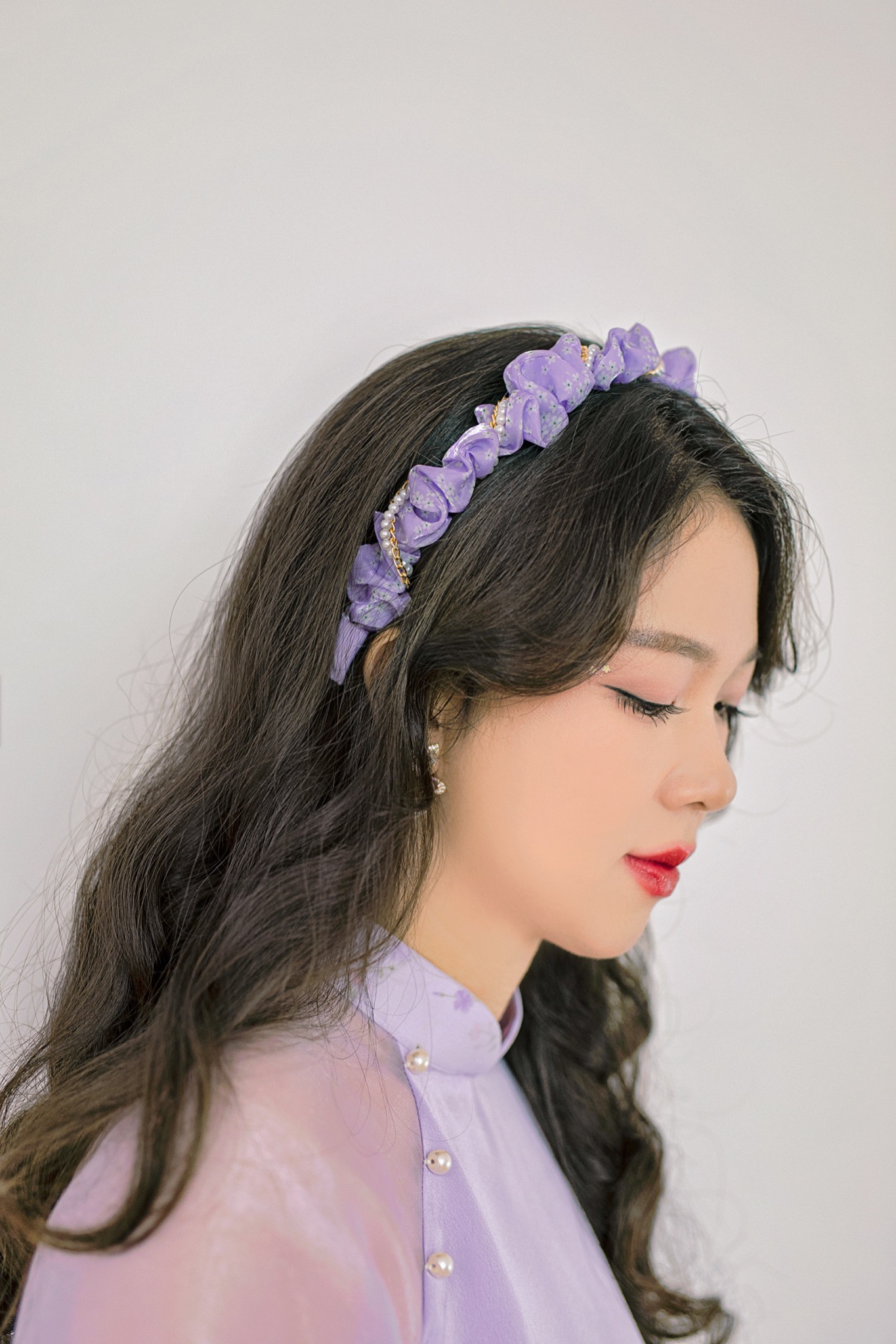 Chất liệu: Tằm nhung cao cấp, phối organza trơn và voan hoa.