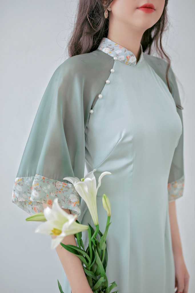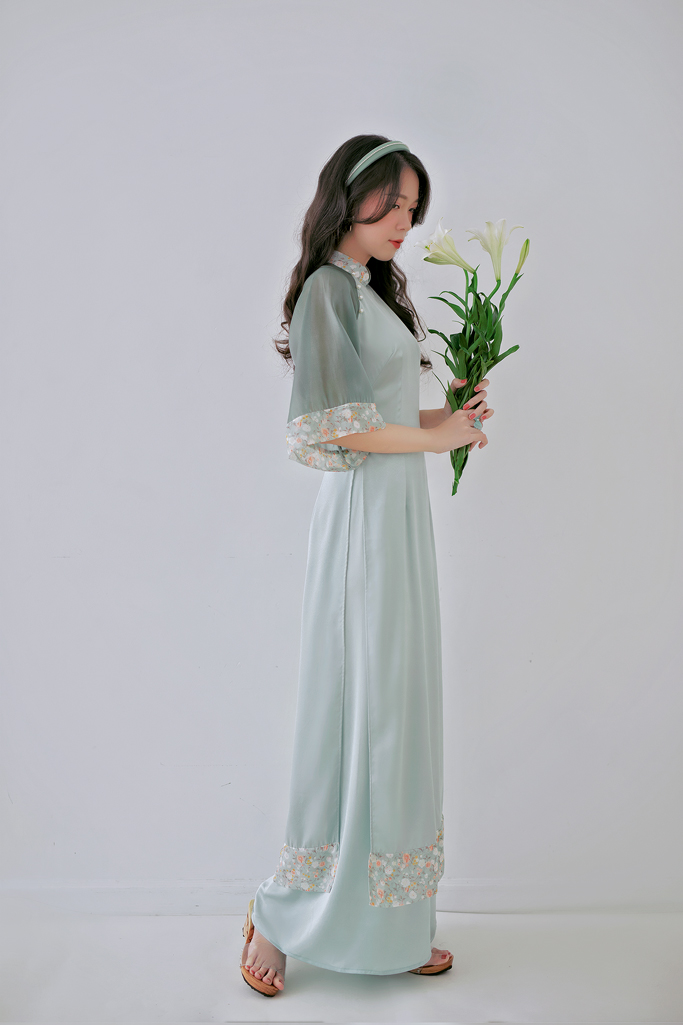 Áo dài Bách Hoa Xuân là dòng sản phẩm áo dài cách tân rất được yêu thích trong năm nay tại Sumire Store. Với những màu hoa cỏ được phối dịu dàng hơn trên vạt tà, trên tay áo. Thân áo cũng tạo độ uyển chuyển và gọn vào người hơn các dáng áo dài khác. Sumire đặc biệt chọn vải organza nhũ để phối cùng màu tay (Sumire đã bọc hết đường may nên nàng yên tâm không bị vải gây khó chịu nhé), để giữ nét bồng bềnh, thơ thẩn rất riêng của brand chúng mình. Vì ưu tiên chọn vải dễ mặc, ít nhăn, nên nàng có thể yên tâm diện áo trong nhiều dịp nha.