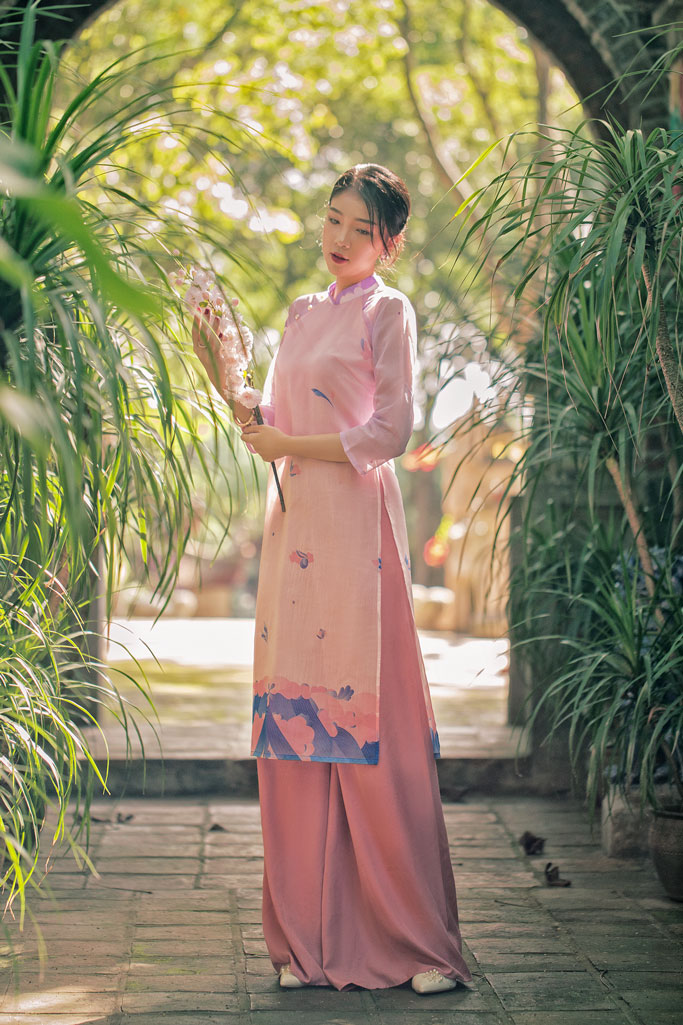 Áo dài Dáng xưa hoa văn Diên Phúc "Xuân Cảnh" - Limited Ao dai Collection 2021