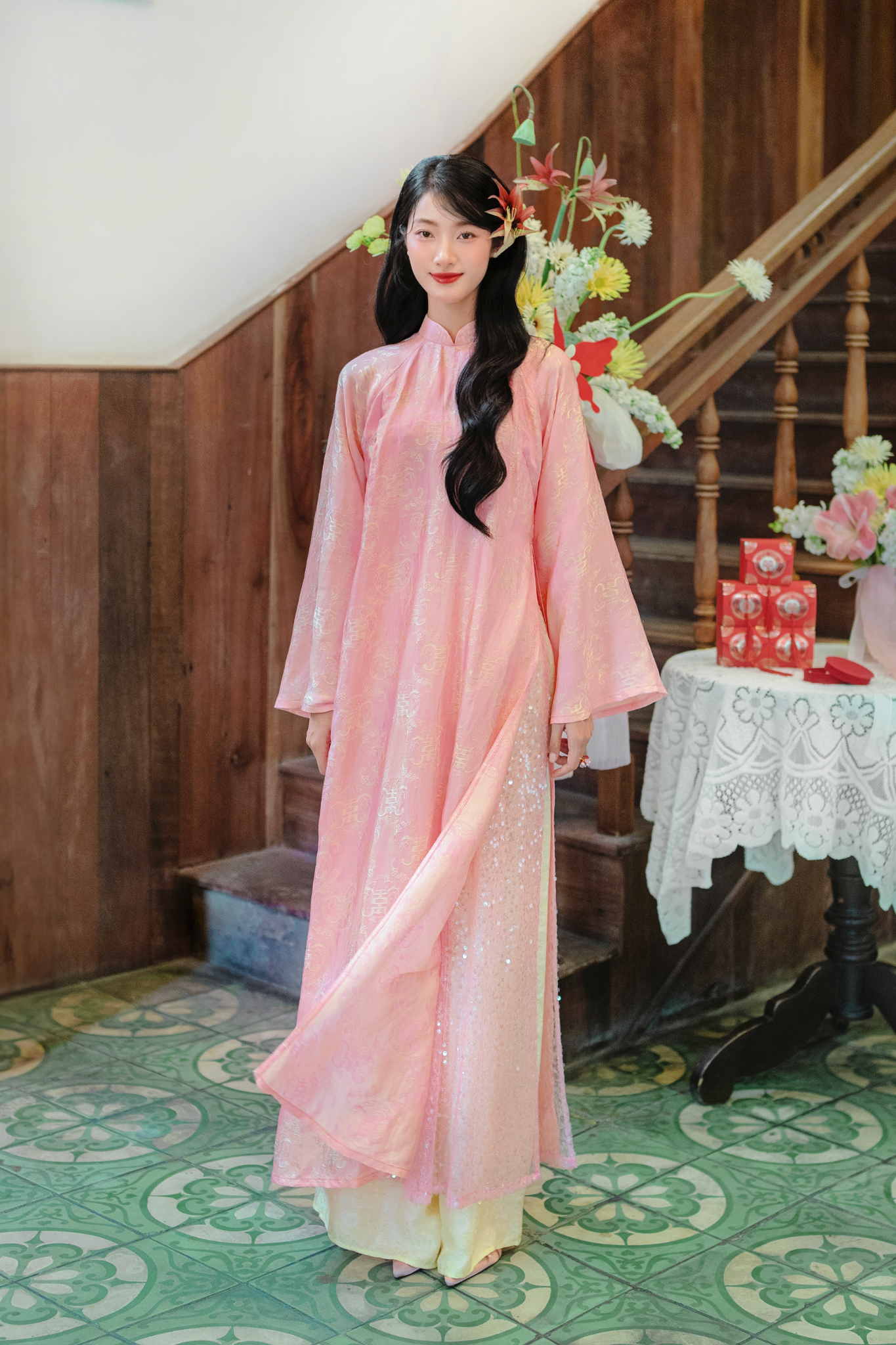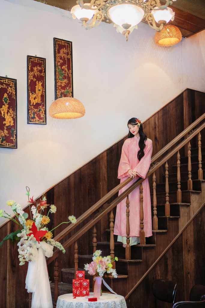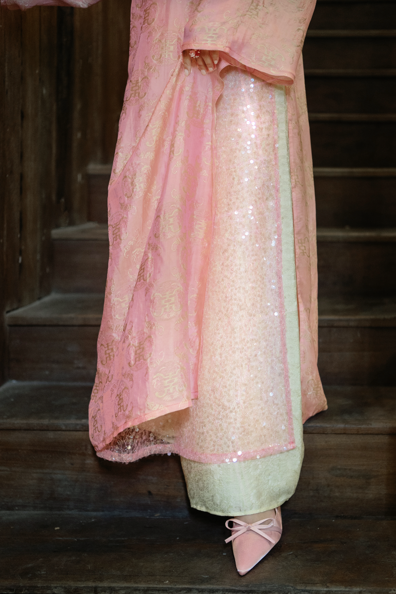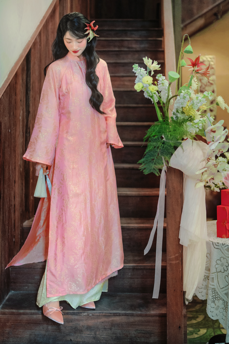 [Mới mới] Áo dài lụa tơ tằm Dáng suôn Phúc Hạnh - Hồng phúc thọ