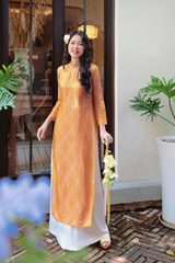 Áo dài lụa tơ tằm Dáng suôn Phúc Thọ - Cam vạn thọ