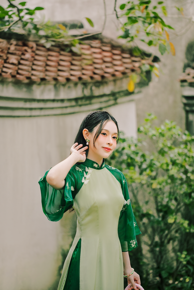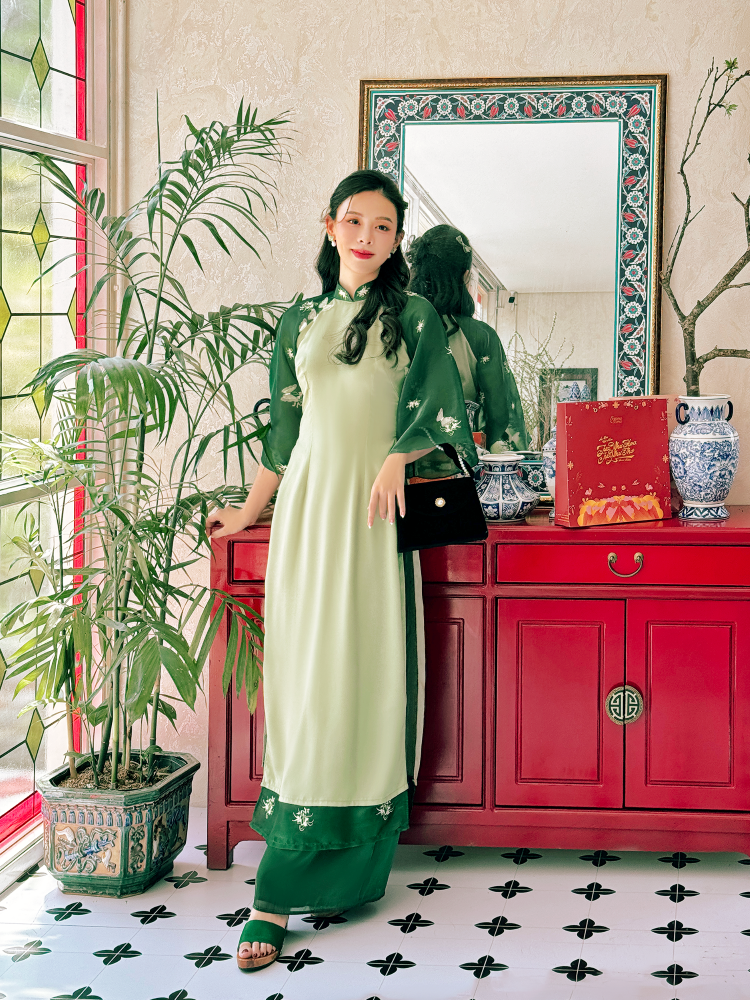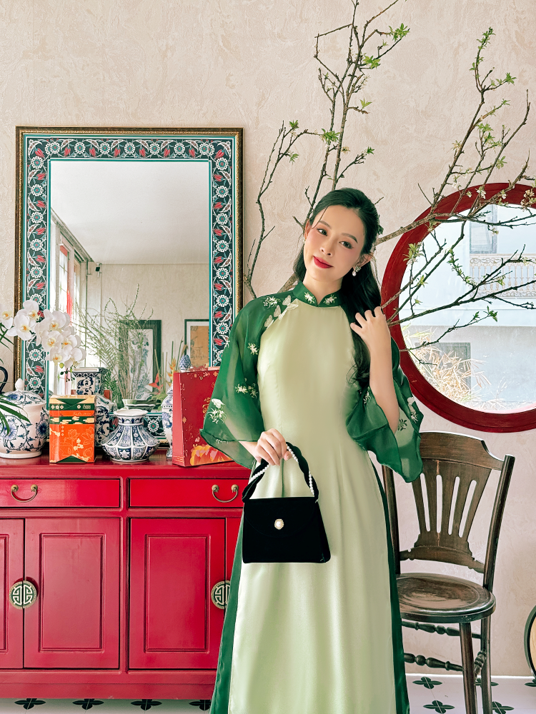 Chất liệu: Tằm nhung cao cấp, phối organza trơn và thêu hoa.