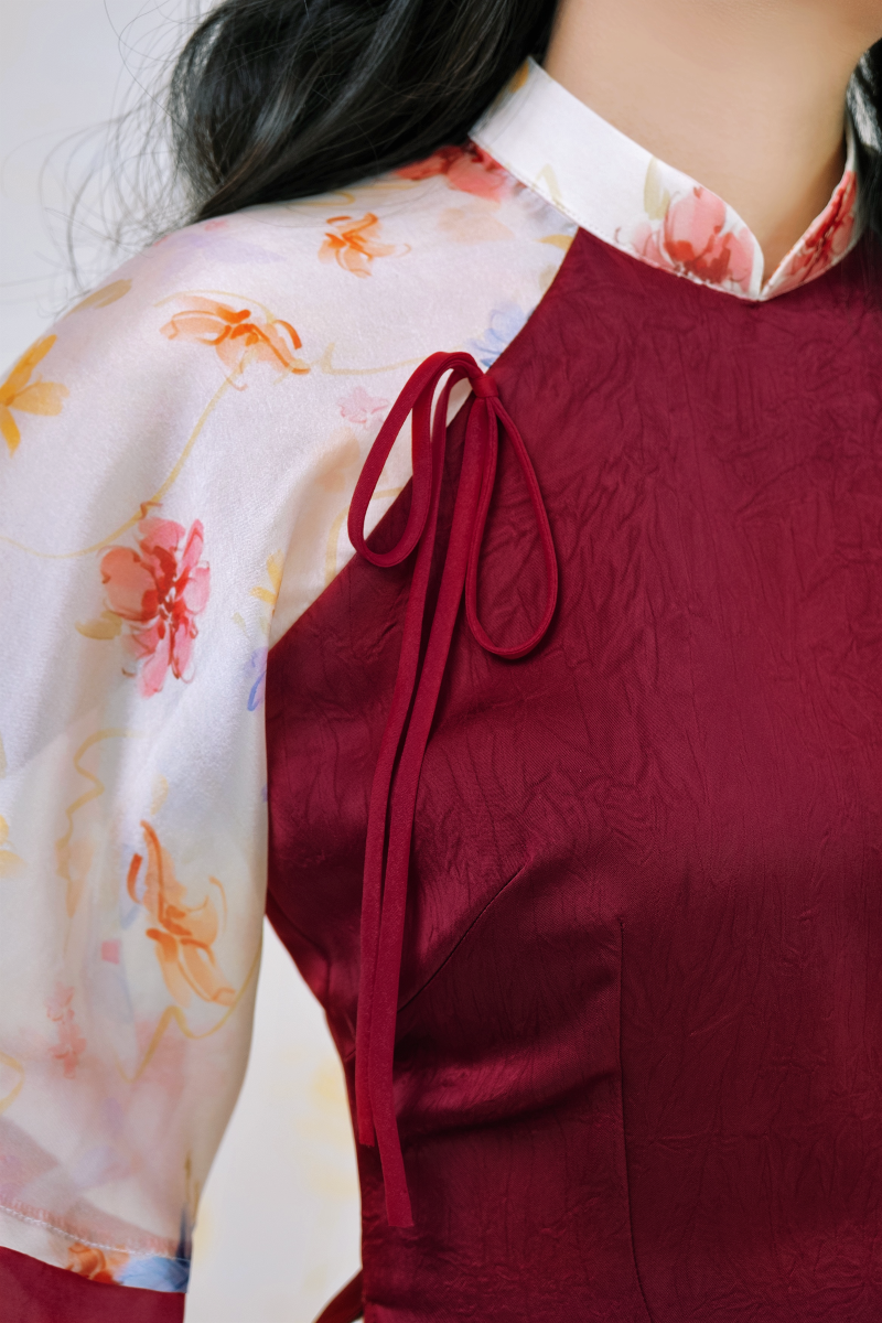 Chất liệu: Lụa Vân, phối voan hoa và tơ ánh kim