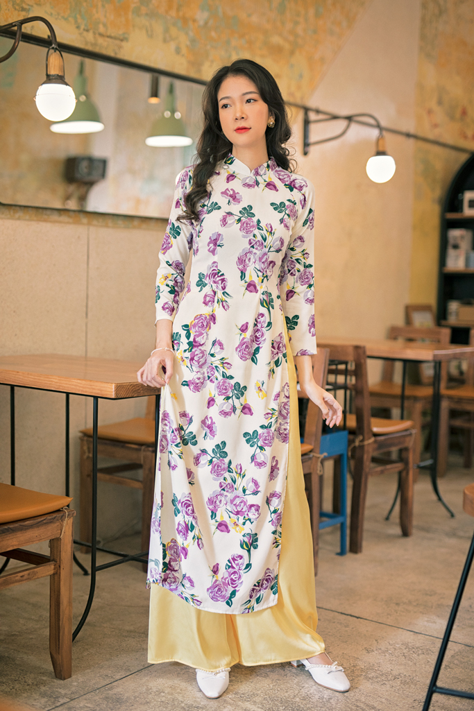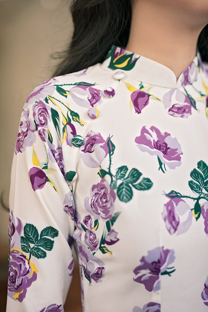 Mỗi năm khi mùa thu về phố, Sumire Store lại chuẩn bị những chiếc áo dài hoa mới với chất liệu ít nhăn, thanh lịch dành riêng cho những ngày này. Dáng áo cổ đứng nhưng không quá cao, gọn gàng và thuận tiện cho hoạt động hàng ngày, đây cũng là dáng áo truyền thống được yêu thích nhất tại Sumire Store nhiều năm nay đó ạ.