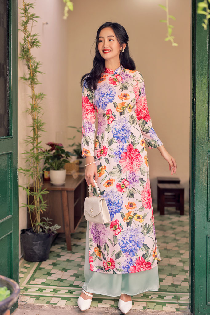 Dáng áo truyền thống tà dài, eo ôm vừa không bó sát, với hoa văn hoa cỏ mùa hè trên những chất liệu được chúng mình tuyển chọn để đảm bảo sự mát mẻ, thân thiện cho làn da. Dù là giữa tiết trời oi ả, sẽ rất vui nếu nàng vẫn chọn được cho mình tà áo ưng ý khi cần. Để xinh tươi như chúng mình xứng đáng, như lời bài hát "Kìa nắng lên mùa hạ ... Lời bài ca này luôn đẹp ngày nắng lên".
