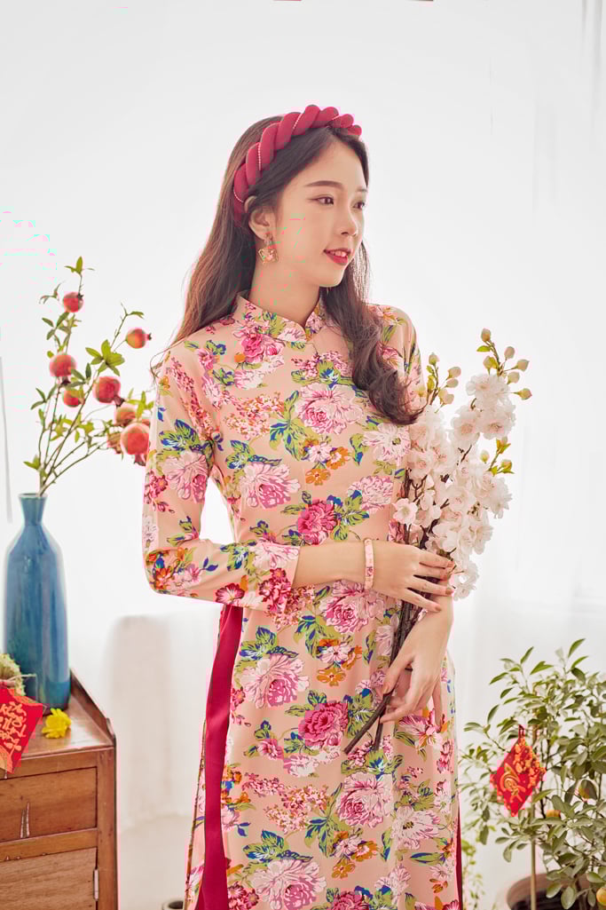 Áo dài sắc đỏ hoa xuân dành cho Tết Tân Sửu 2021 "Tết à Tết ơi"