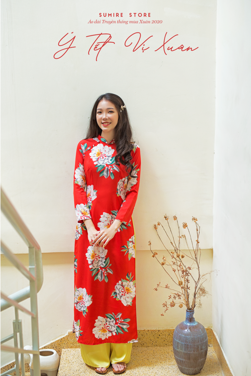Áo dài sắc đỏ hoa xuân dành cho Tết Tân Sửu 2021 "Tết à Tết ơi"