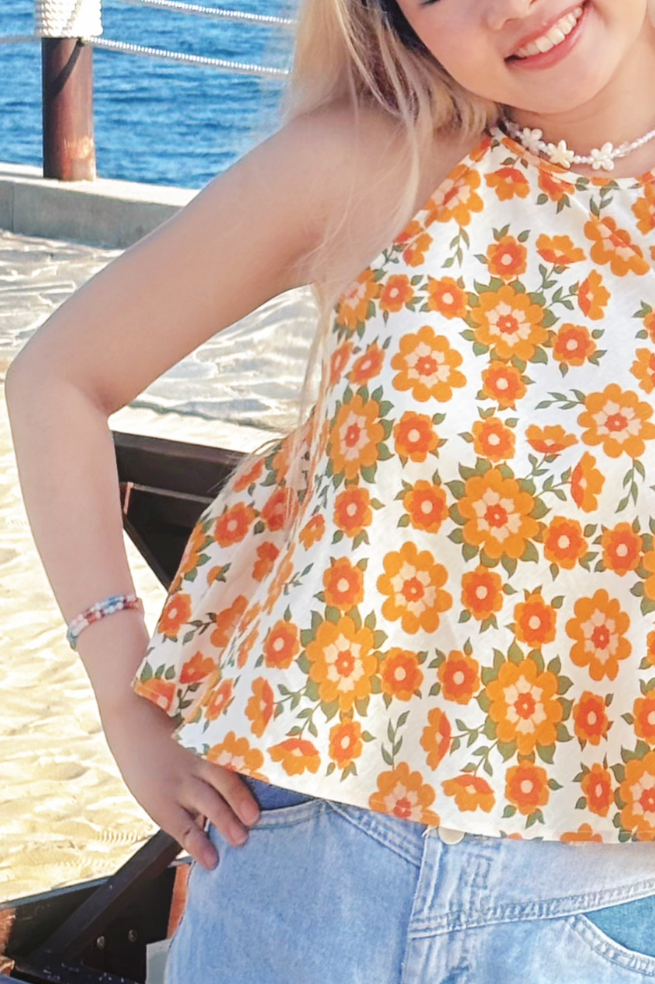 Áo yếm linen Hồng trà - Quýt cam