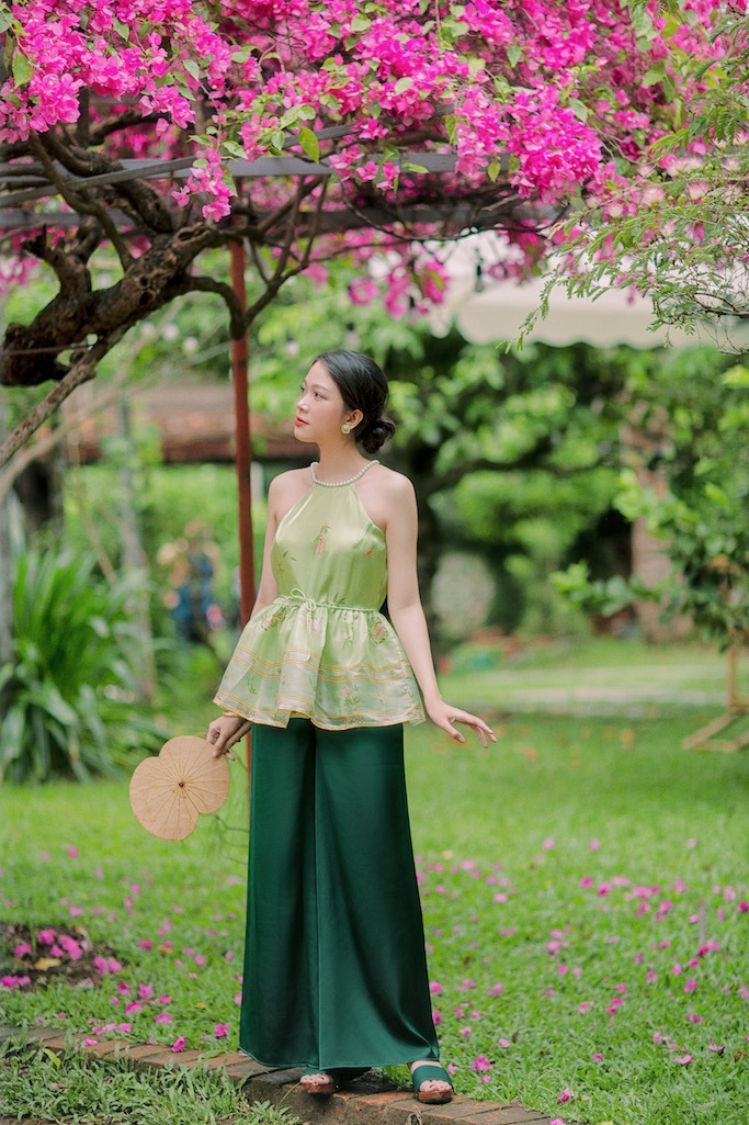 Dịp Trăng rằm sáng tỏ, Sumire Store gửi đến những gia đình nhỏ dòng áo yếm mới nhất, được chúng mình thực hiện riêng từ thiết kế hoa văn, in ấn đến cắt may thành hình thành dáng. Với form áo xòe xinh xắn, phù hợp cho cả mẹ và bé, không kén dáng người, em áo yếm Hoa Niên Ca còn được sử dụng chất liệu organza nhũ cao cấp và được may lớp lót cẩn thận bên trong nữa nghen. Hàng hạt ngọc đính tay trên cổ áo cũng là điểm nhấn rất được yêu thích, có chút kiêu kỳ, lại trong sáng thanh tao.