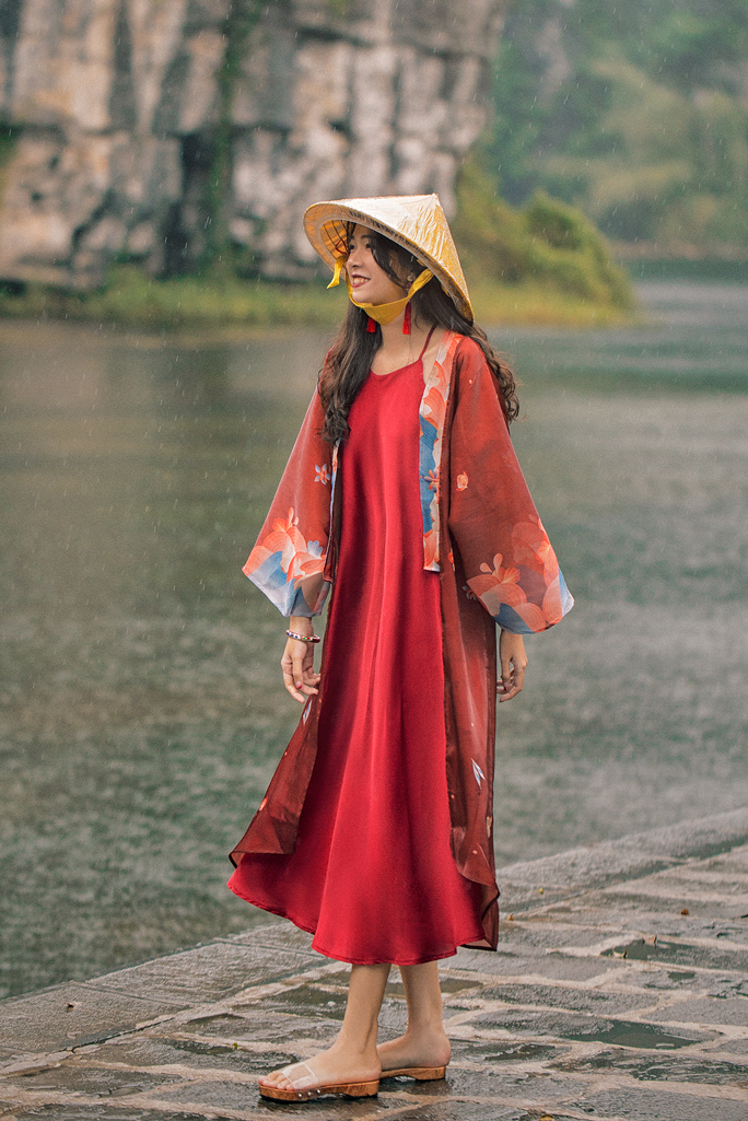 Cơn mưa đầu xuân tưới tắm cho hoa lá nảy lộc đâm chồi. Giữa những bồng bềnh và tung tăng của thiên nhiên, chiếc đầm cổ yếm satin 2 lớp, bung xòe như điệu múa nhỏ xinh xắn và rực rỡ. Đi cùng là áo khoác chất liệu organza cao cấp được in hoa văn cách điệu từ hoa trên áo Nhật Bình thời Nguyễn, chỉ có tại Sumire Store.
