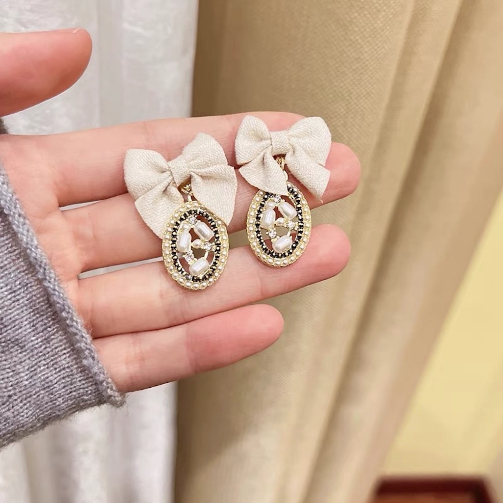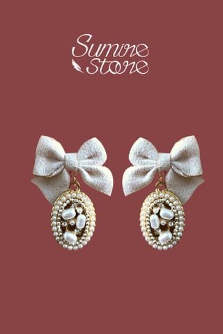 - Màu sắc: nơ kem phối đá bầu dục