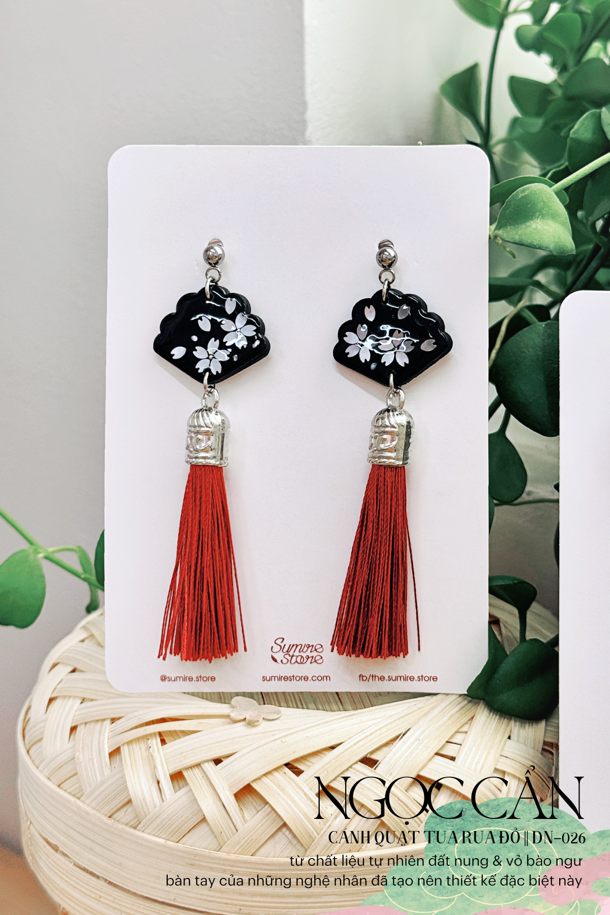Hoa tai đất nung khảm xà cừ thủ công Ngọc Cẩn
