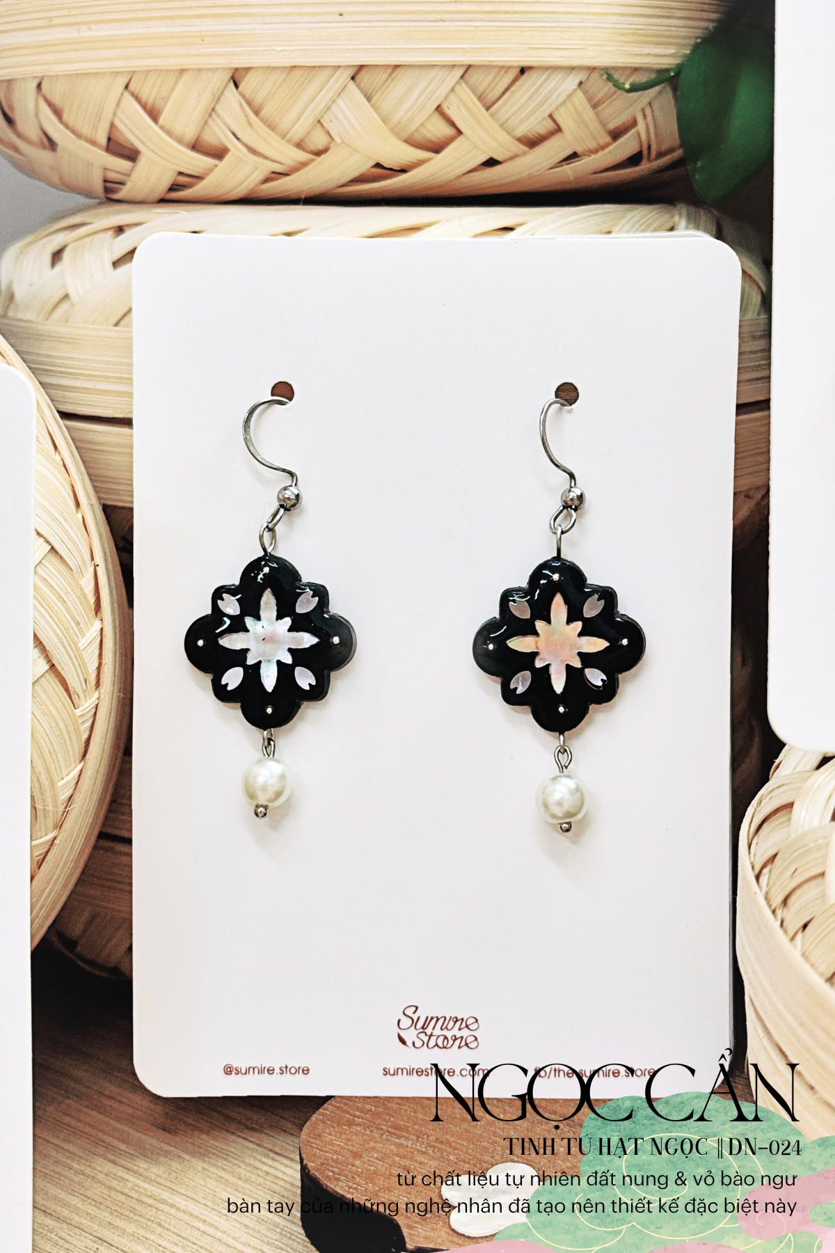 Hoa tai đất nung khảm xà cừ thủ công Ngọc Cẩn