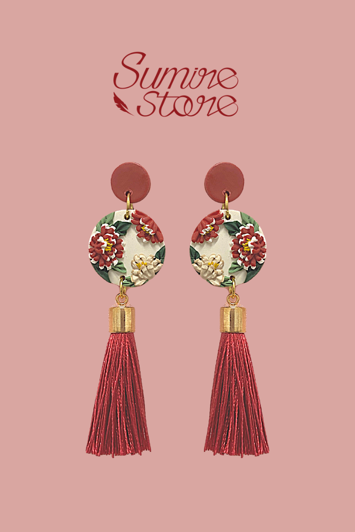 - Màu sắc: Màu trắng gạo và đỏ, hình hoa mẫu đơn đỏ tua rua.