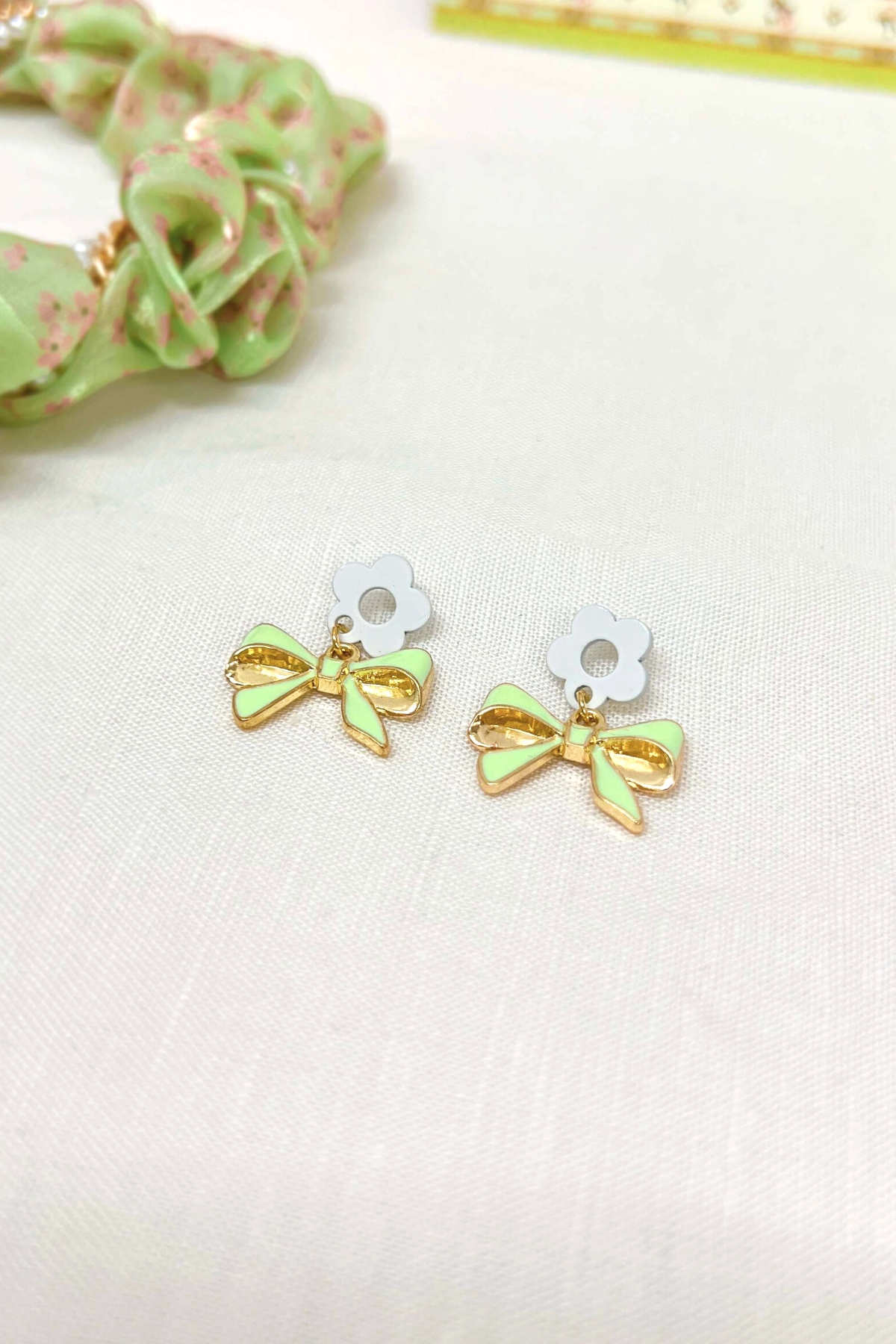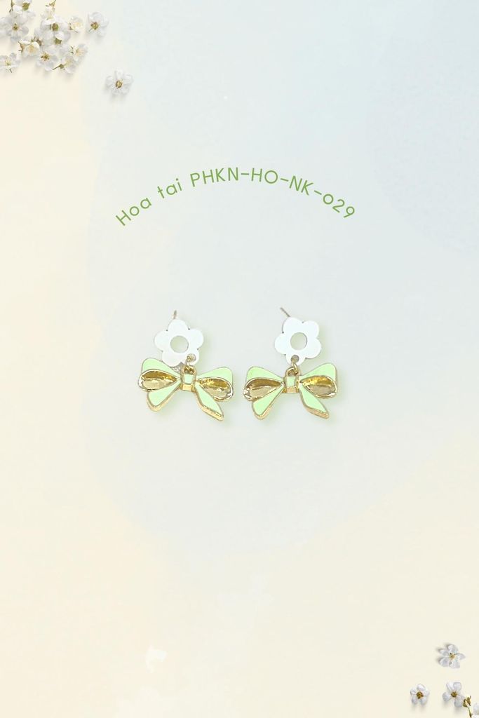 - Sản phẩm: Sumire Store Hoa tai NK-029 hoa trắng nơ xanh ngọc