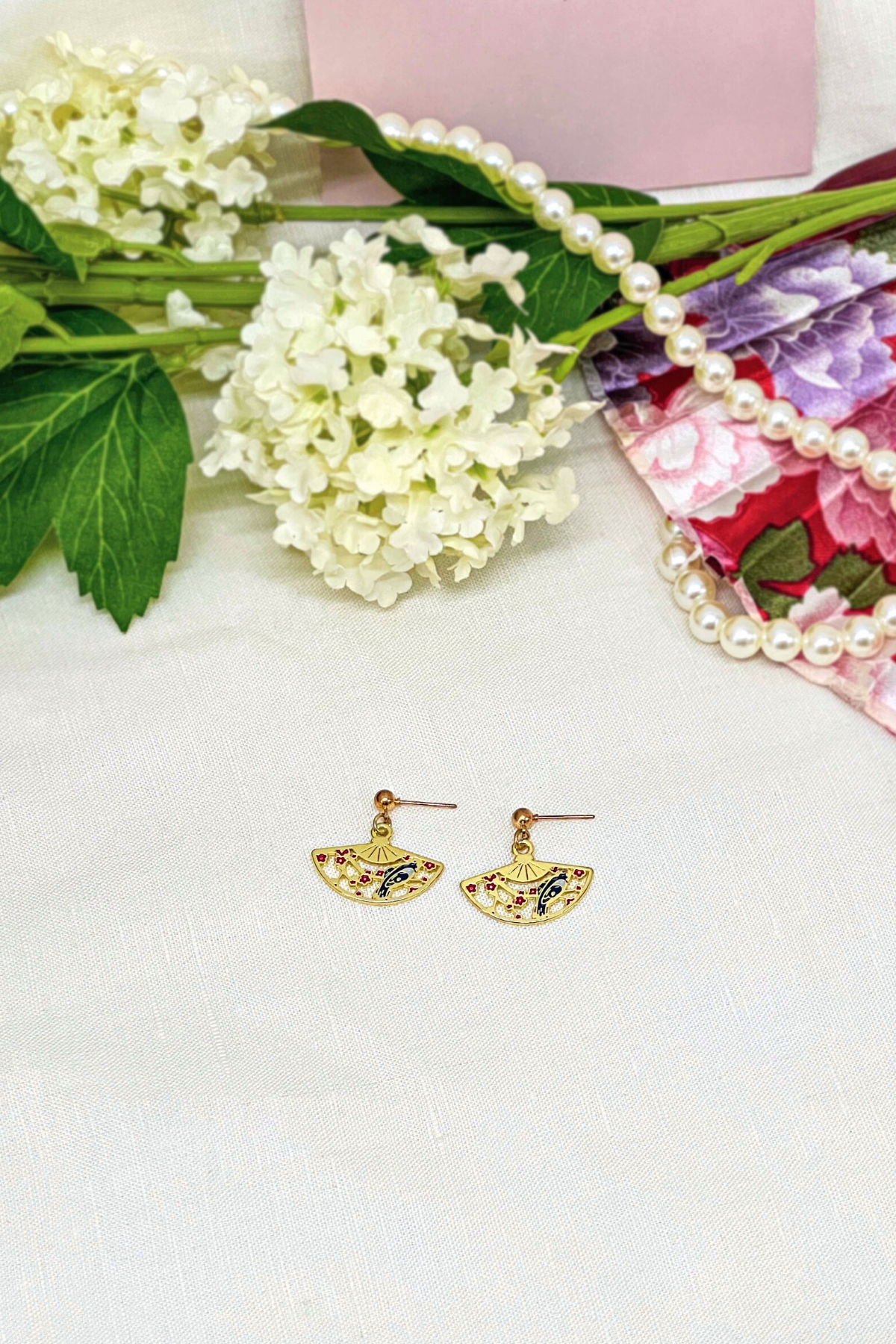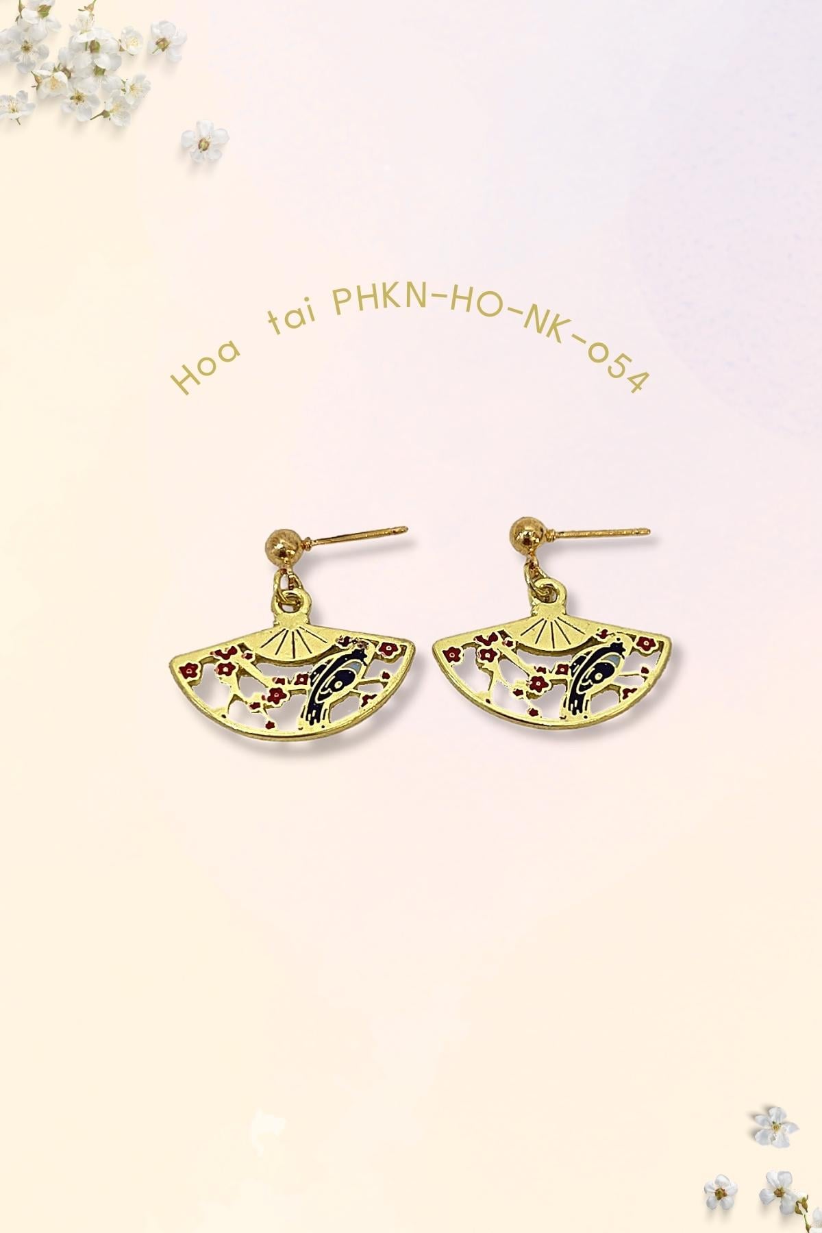 - Sản phẩm: Sumire Store Hoa tai NK-054 hình quạt họa tiết chim xanh đậu cành mận đỏ