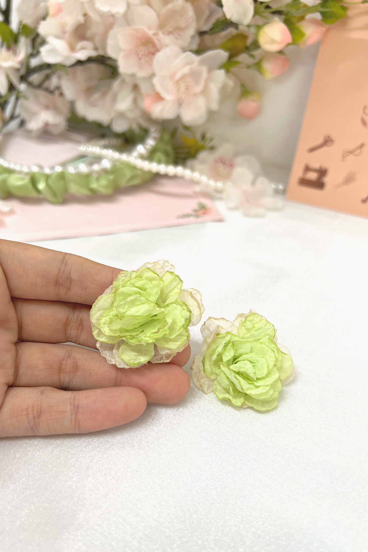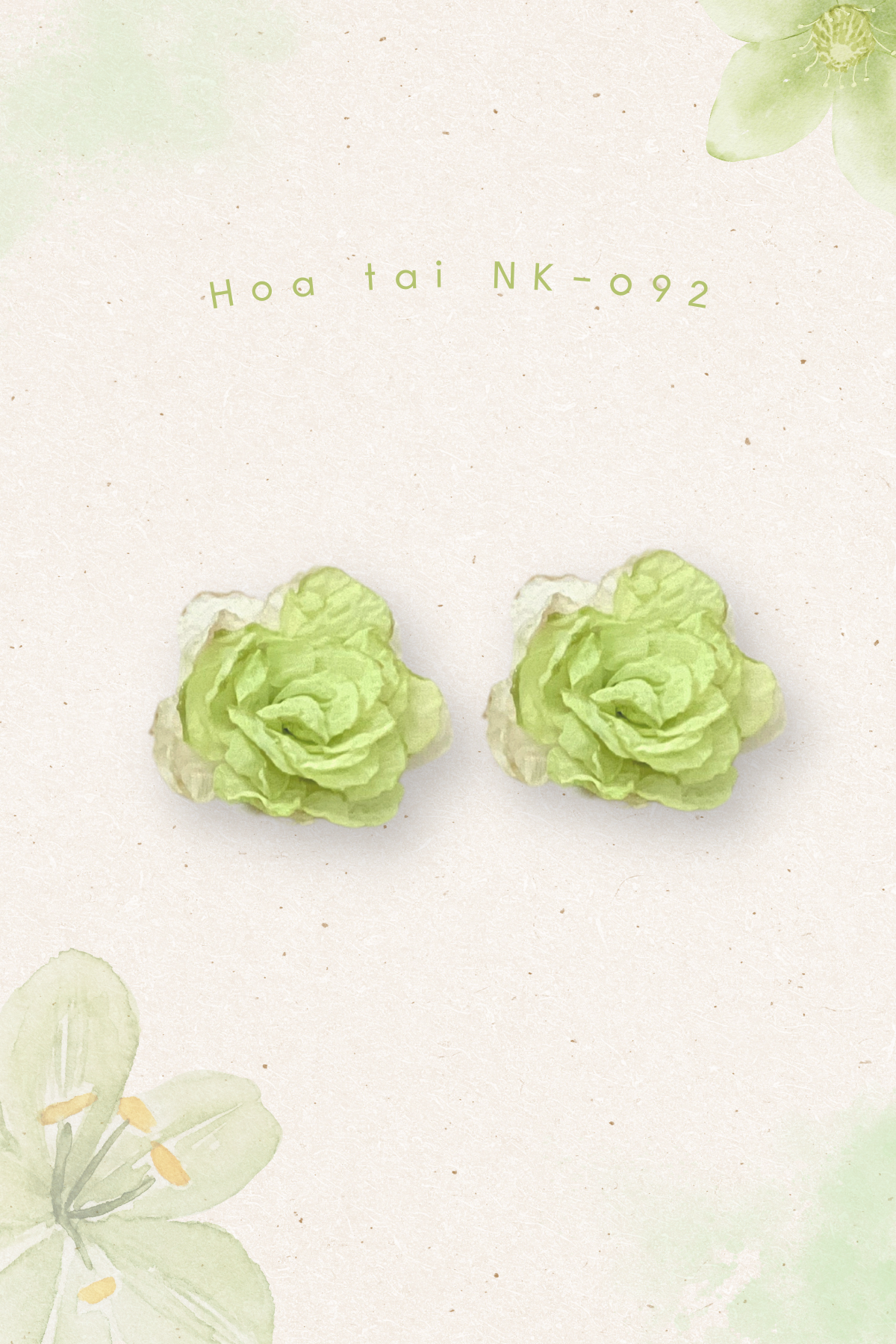 - Sản phẩm: Hoa tai NK-092 hoa vải cánh xòe xanh cốm
