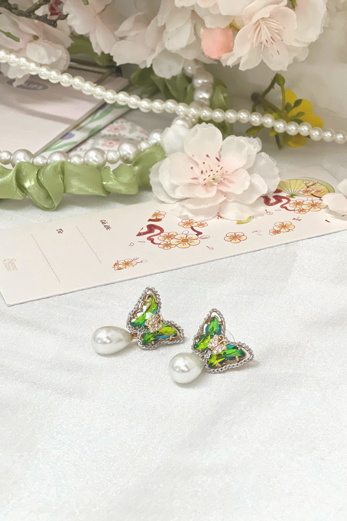 - Sản phẩm: Hoa tai NK-099 bướm xanh lá đính hạt ngọc giọt nước