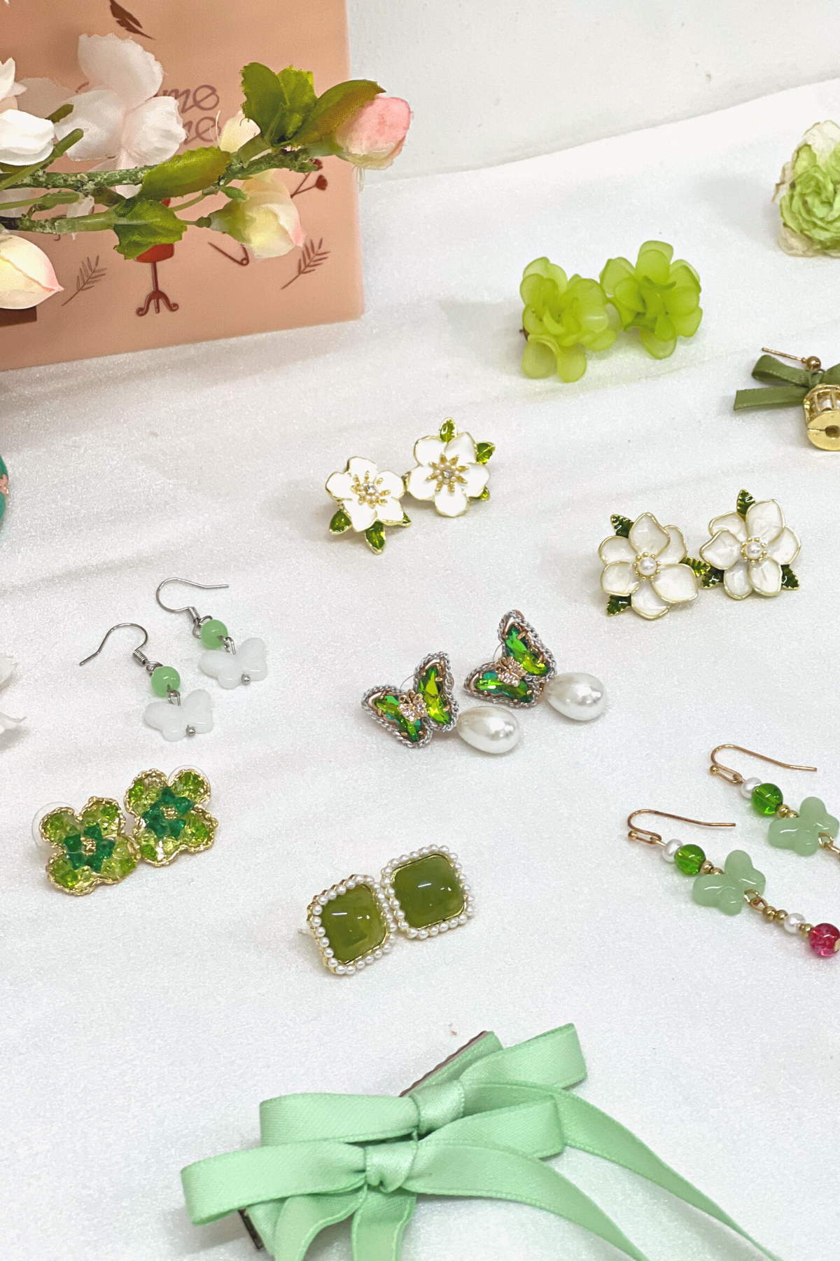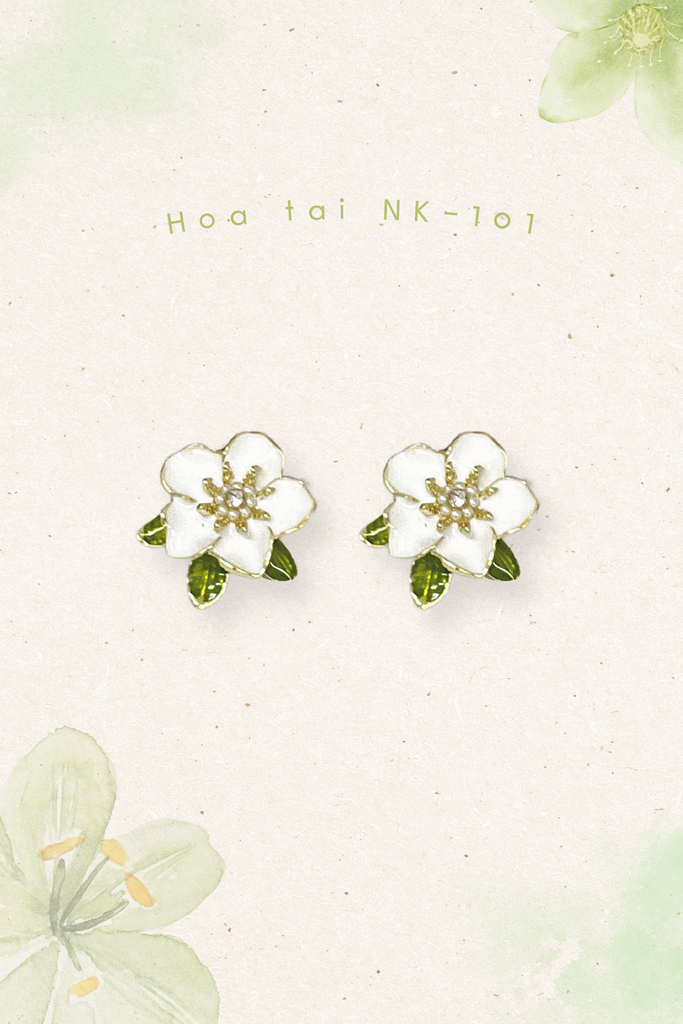 - Sản phẩm: Hoa tai NK-101 5 cánh trắng nhụy vàng lá xanh