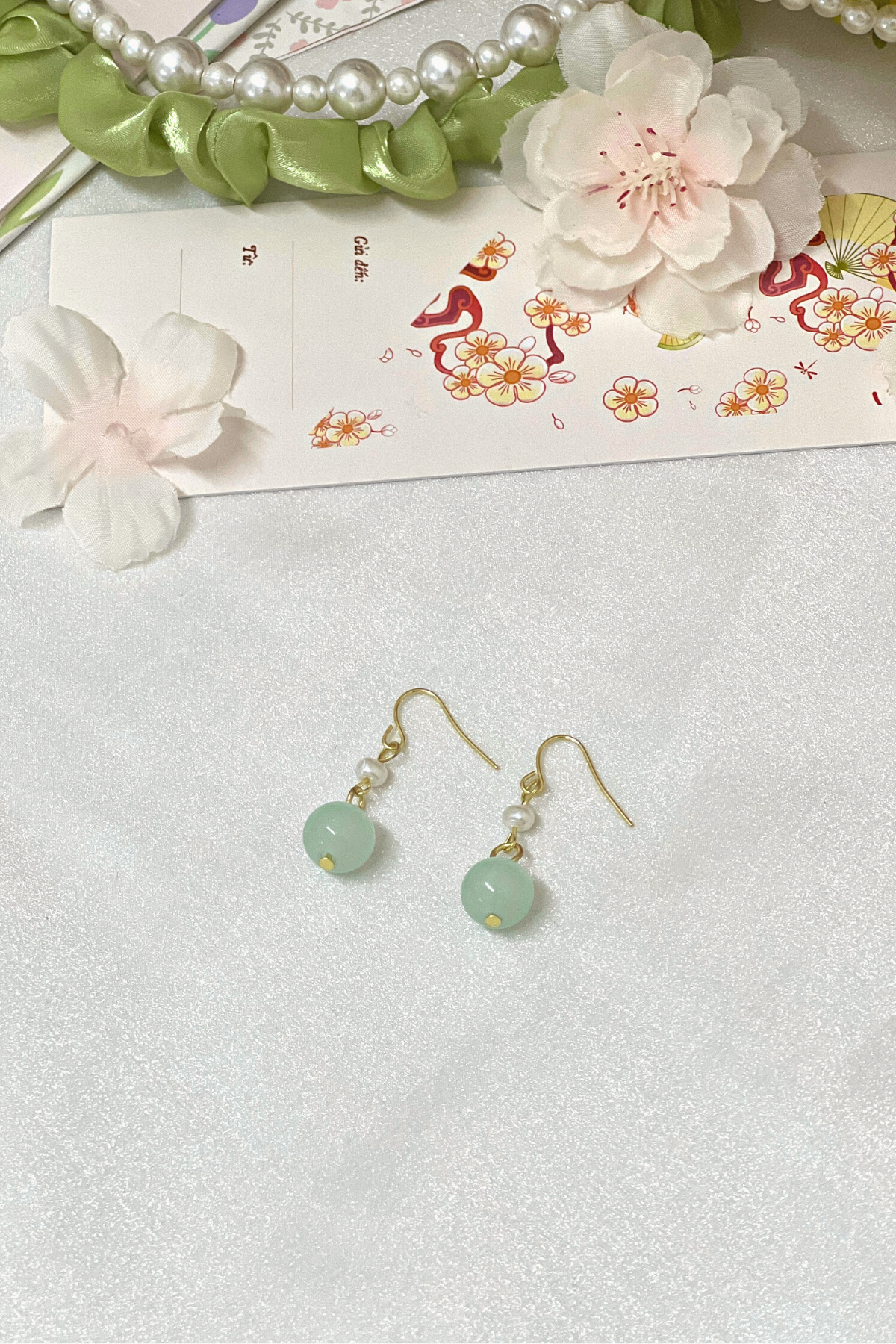 - Sản phẩm: Hoa tai NK-113 hạt ngọc tròn xanh bích