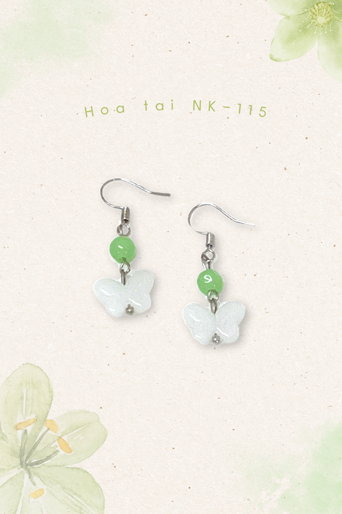 - Sản phẩm: Hoa tai NK-115 bướm trắng nhỏ phối hạt ngọc xanh