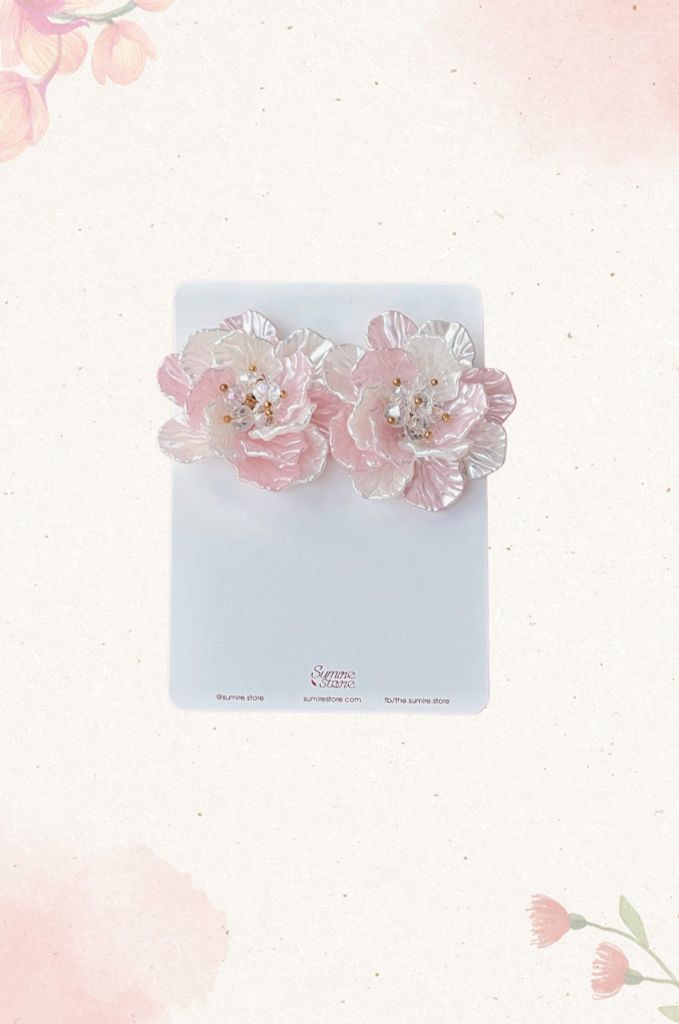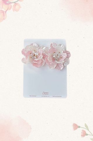 Hoa tai NK-133 hoa đá nhụy hạt ngọc hồng phối trắng KHUYẾN MÃI - ƯU ĐÃI