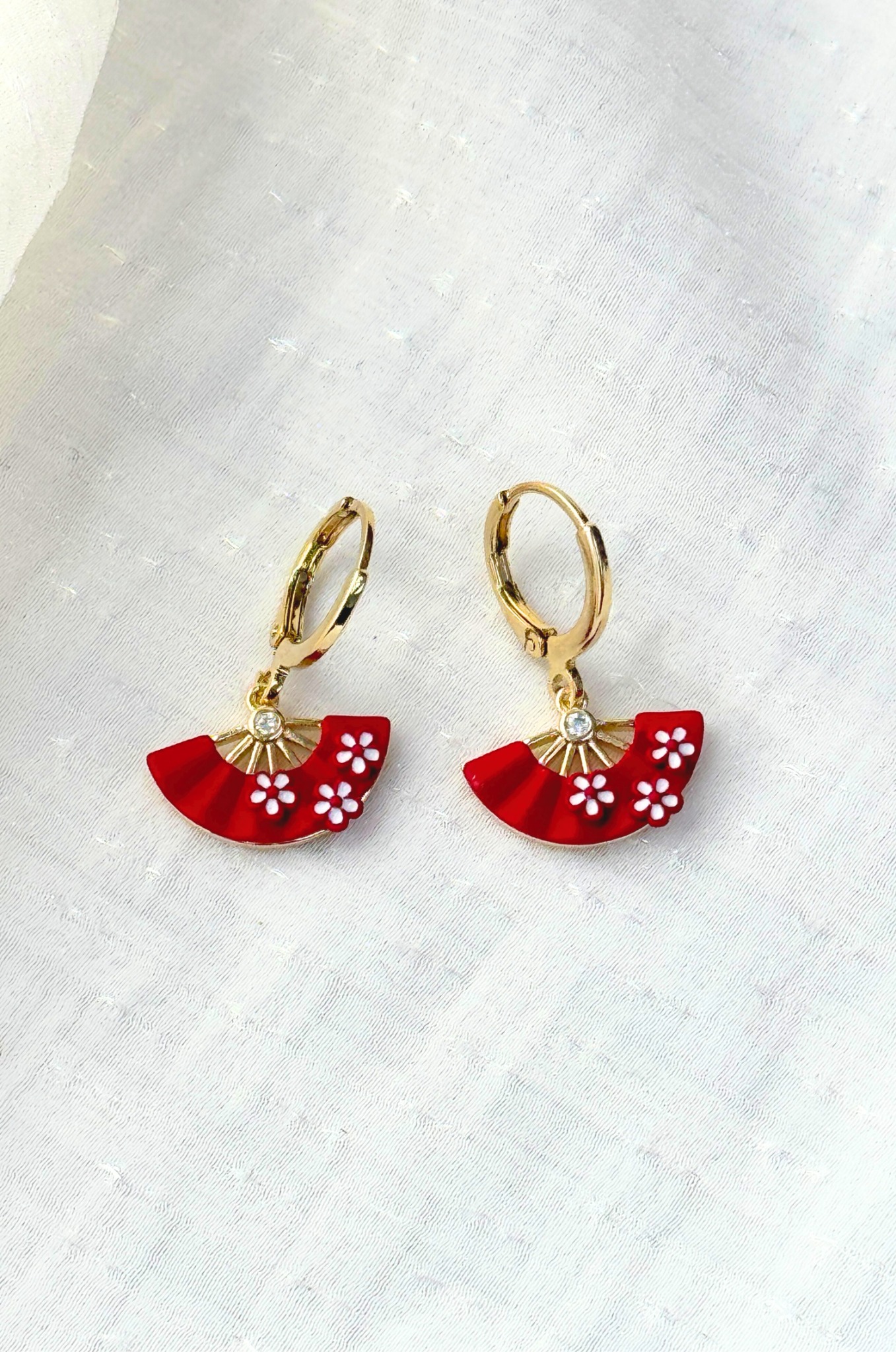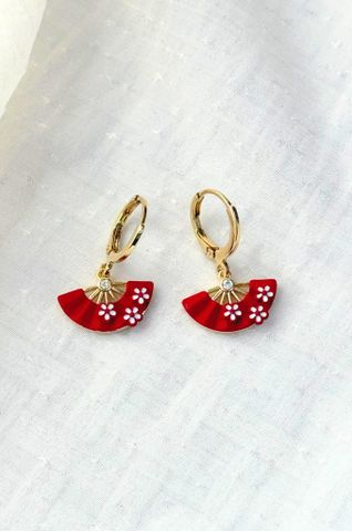 Hoa tai NK-147 quạt đỏ hoa trắng nhỏ