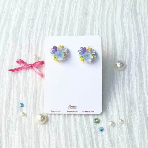 Hoa tai NK-161 hoa cẩm tú xanh dương phối viền vàng xanh KHUYẾN MÃI - ƯU ĐÃI