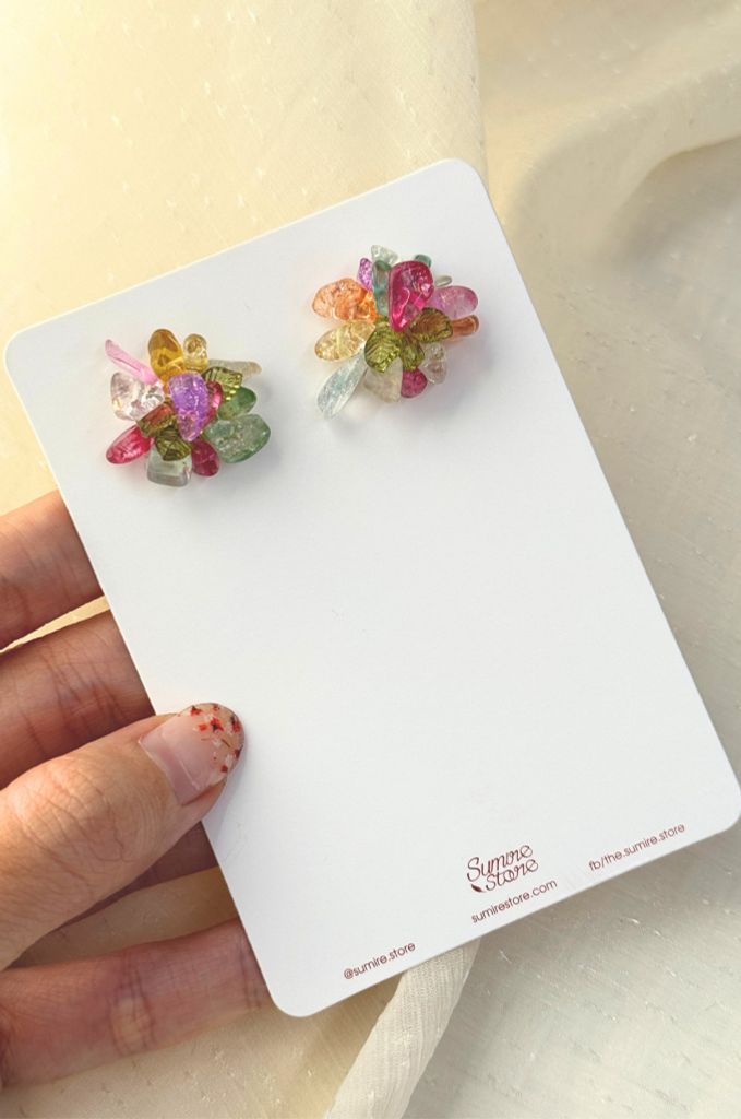 Hoa tai NK-165 hoa đá nhiều màu phối lá xanh