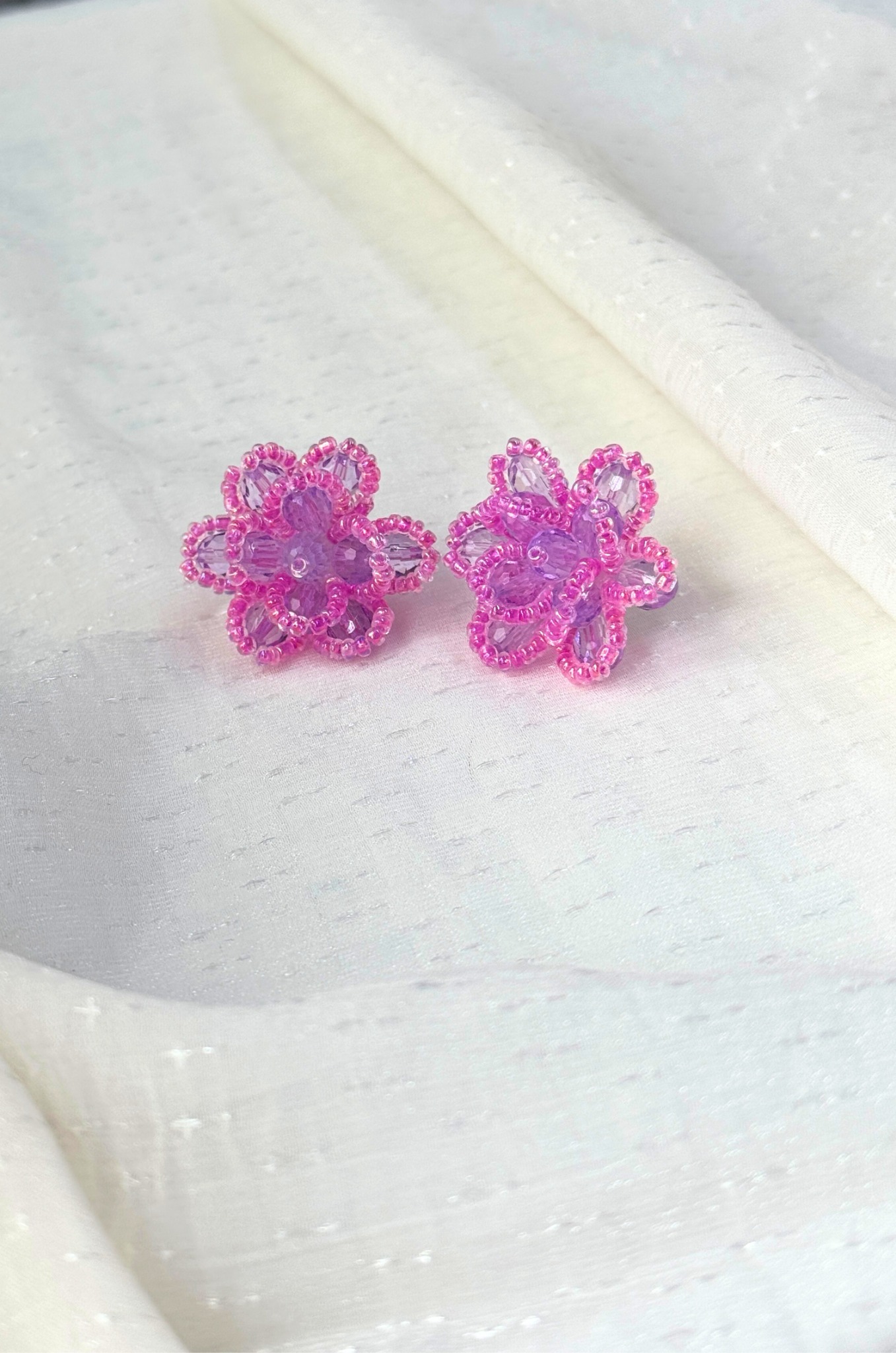 Hoa tai NK-166 hoa hạt ngọc bầu dục tím Huế phối viền ngọc trai KHUYẾN MÃI - ƯU ĐÃI