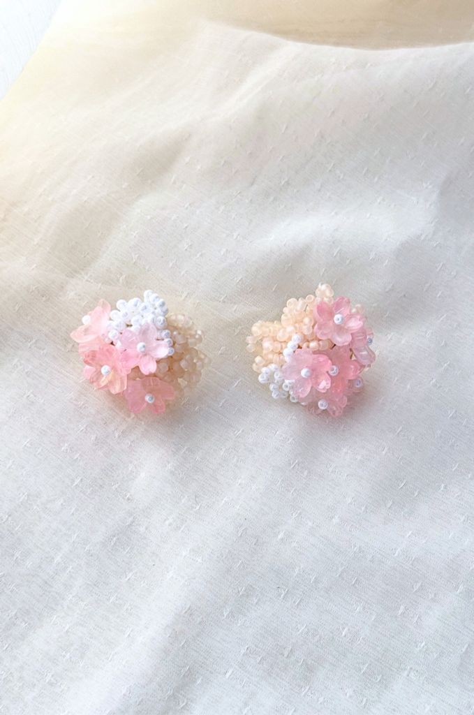 Hoa tai NK-177 hoa cẩm tú hồng loang phối trắng kem