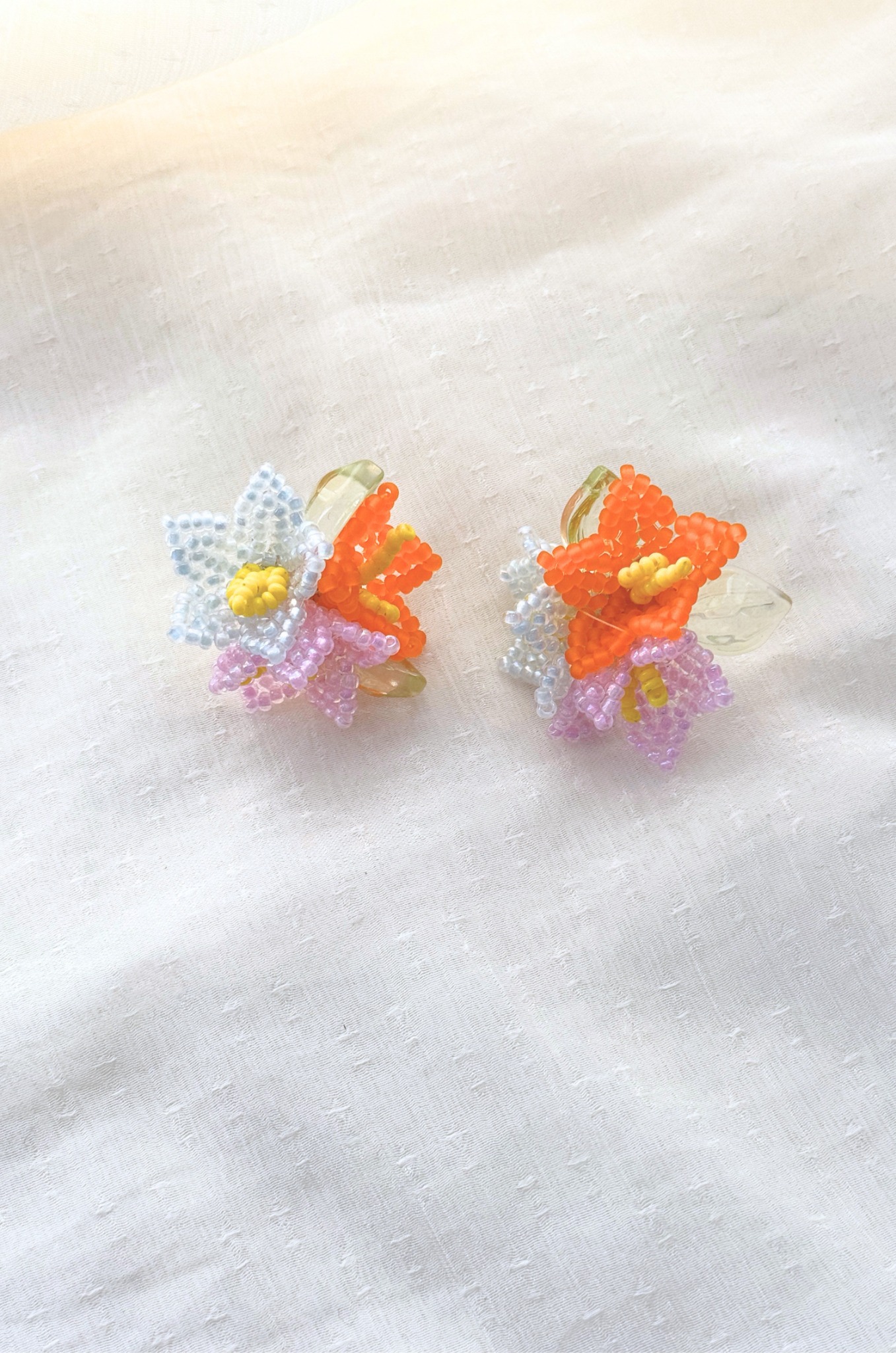Hoa tai NK-179 hoa cườm cam tím trắng nhụy vàng KHUYẾN MÃI - ƯU ĐÃI