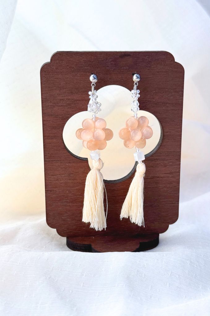 Hoa tai NK-188 hạt tròn đính đá phối tua rua cam nhạt KHUYẾN MÃI - ƯU ĐÃI