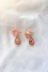 Hoa tai NK-190 hoa hồng phối đá bầu dục hoa trong