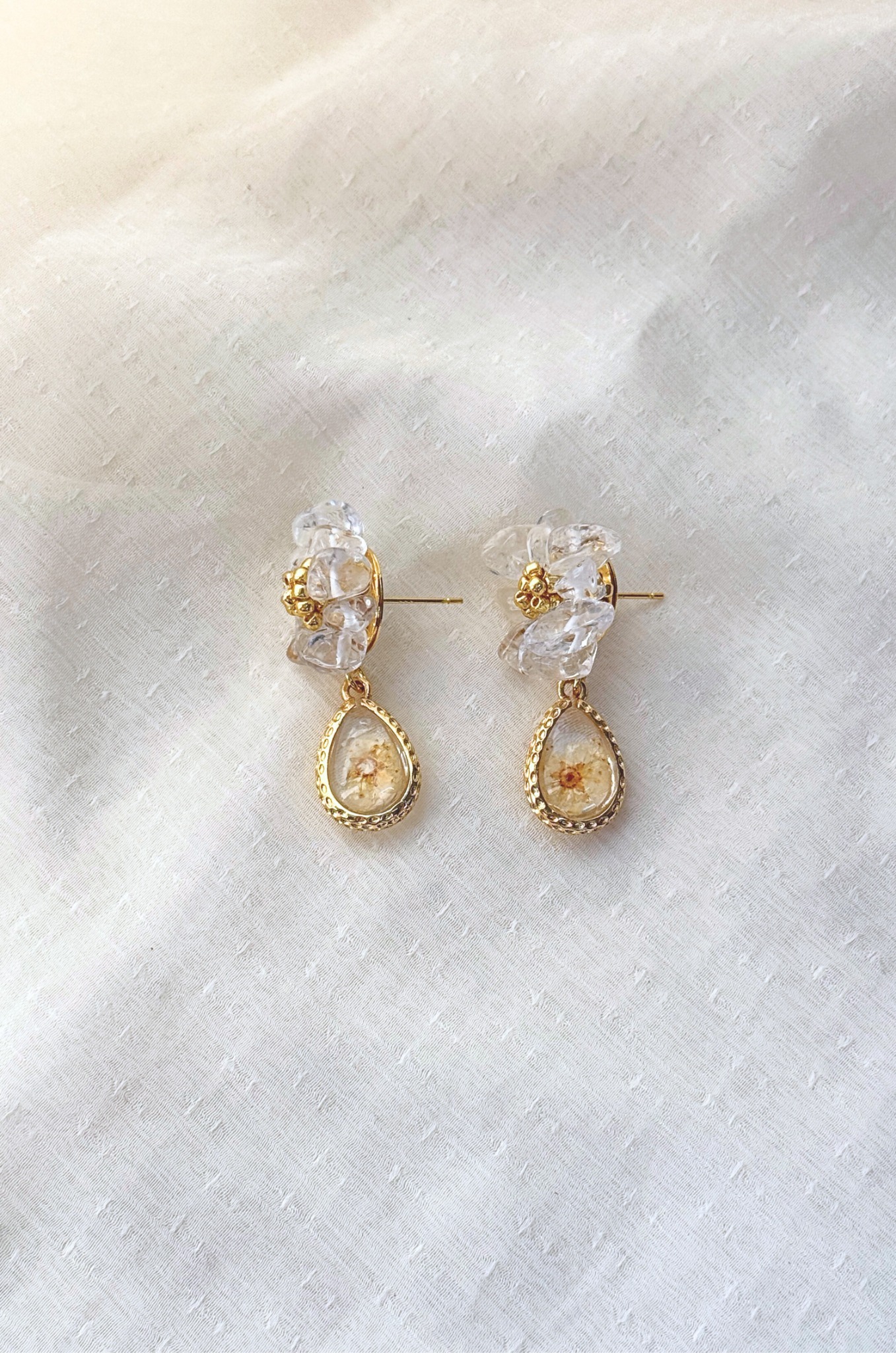 Hoa tai NK-191 hoa trắng phối đá bầu dục hoa trong