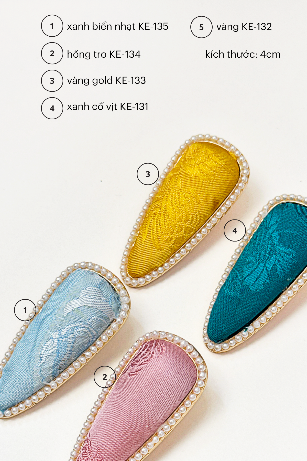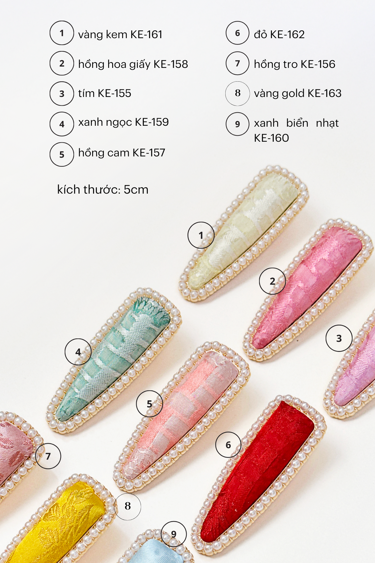 Kẹp tóc bọc lụa tơ tằm Gấm Tiên - Cánh hoa viền hạt ngọc KHUYẾN MÃI - ƯU ĐÃI