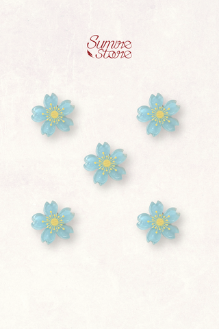 - Màu sắc: Màu xanh biển, hình hoa anh đào xanh biển.