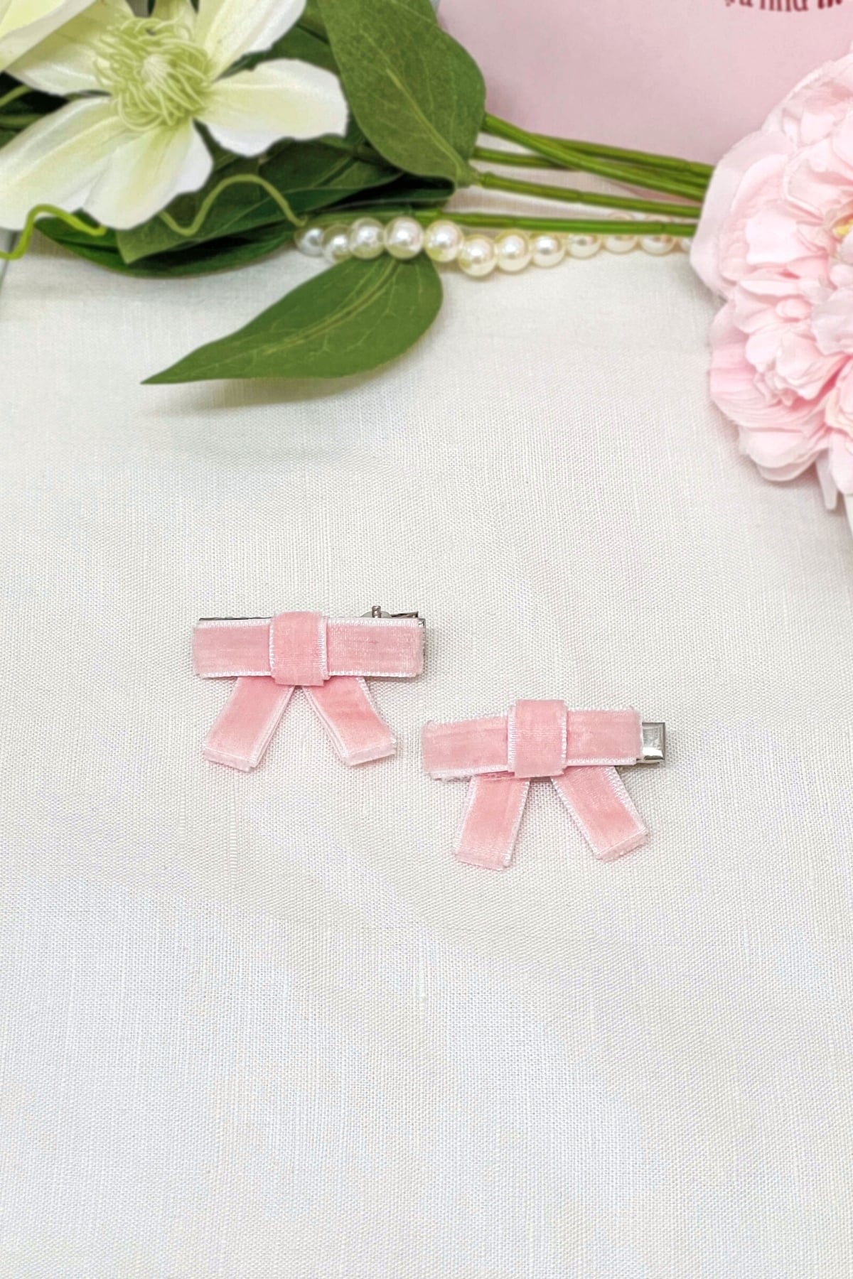 - Sản phẩm: Sumire Store Kẹp tóc KE-044 ruy băng nhung hồng phấn cỡ nhỏ