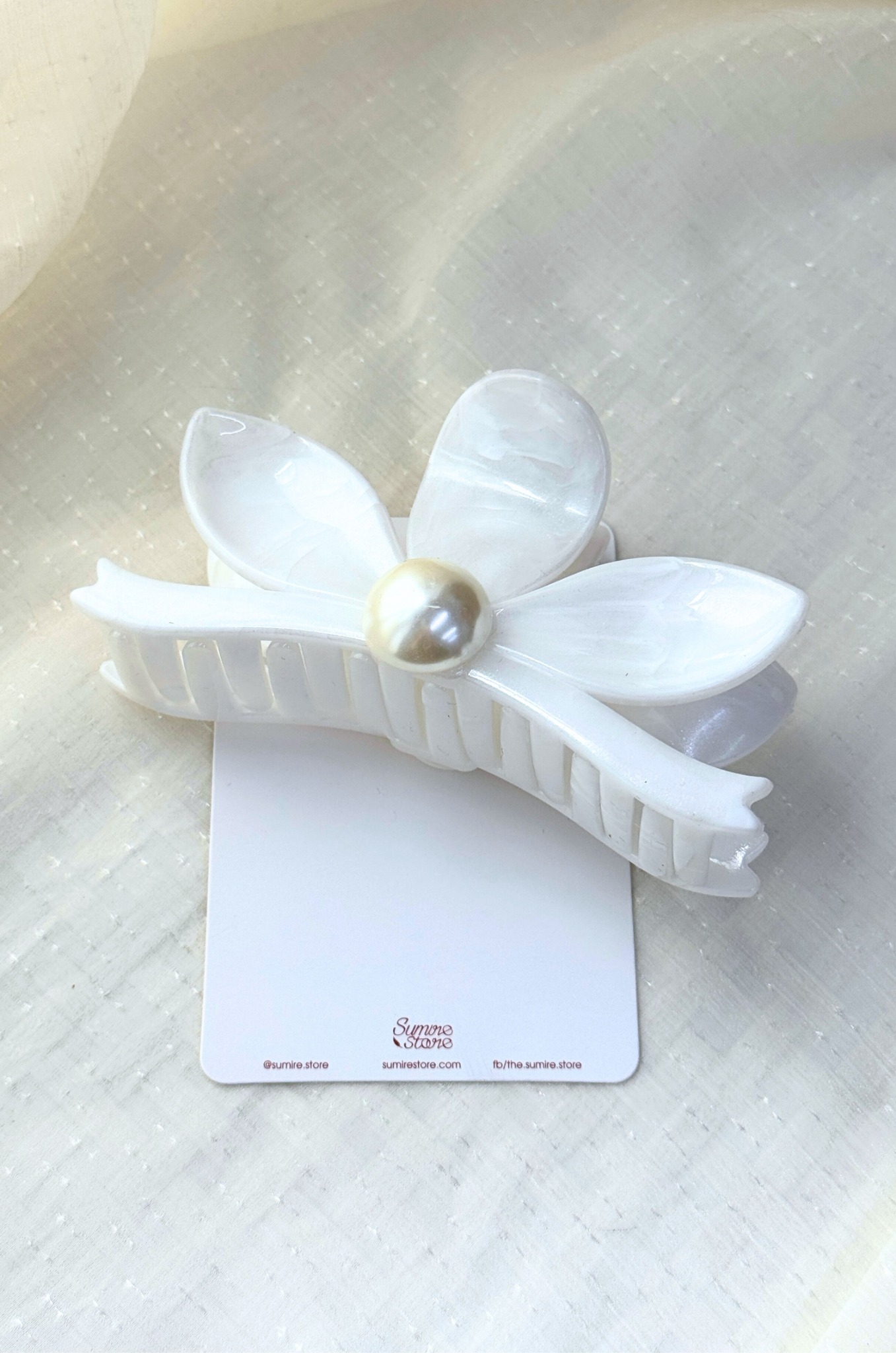 Kẹp tóc KE-084 hoa 3 cánh lớn hạt ngọc trai - trắng KHUYẾN MÃI - ƯU ĐÃI
