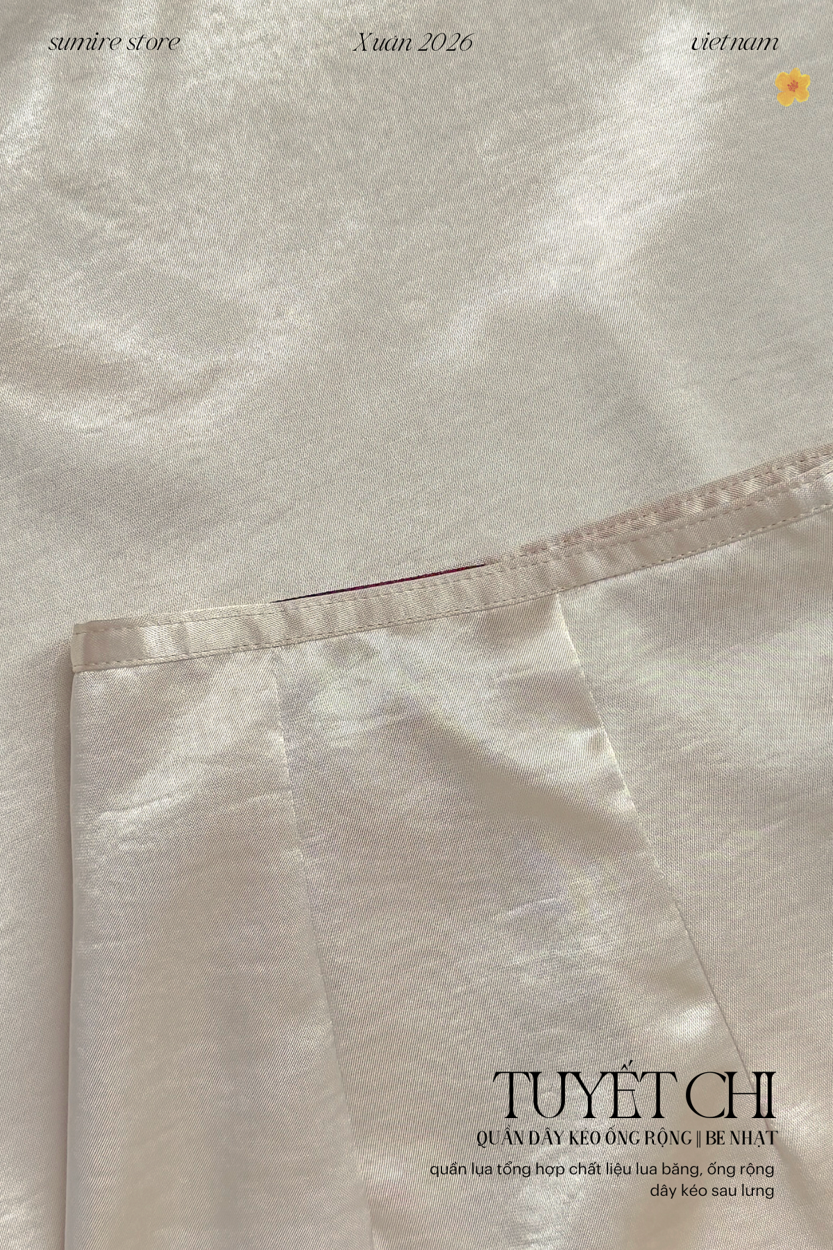 Quần Tuyết Chi - form ống rộng dây kéo, thướt tha và thoải mái khi mặc.
