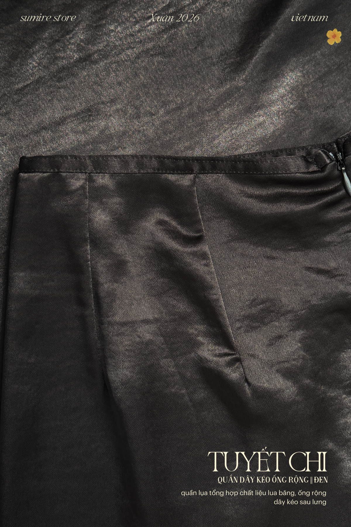 Quần Tuyết Chi - form ống rộng dây kéo, thướt tha và thoải mái khi mặc.