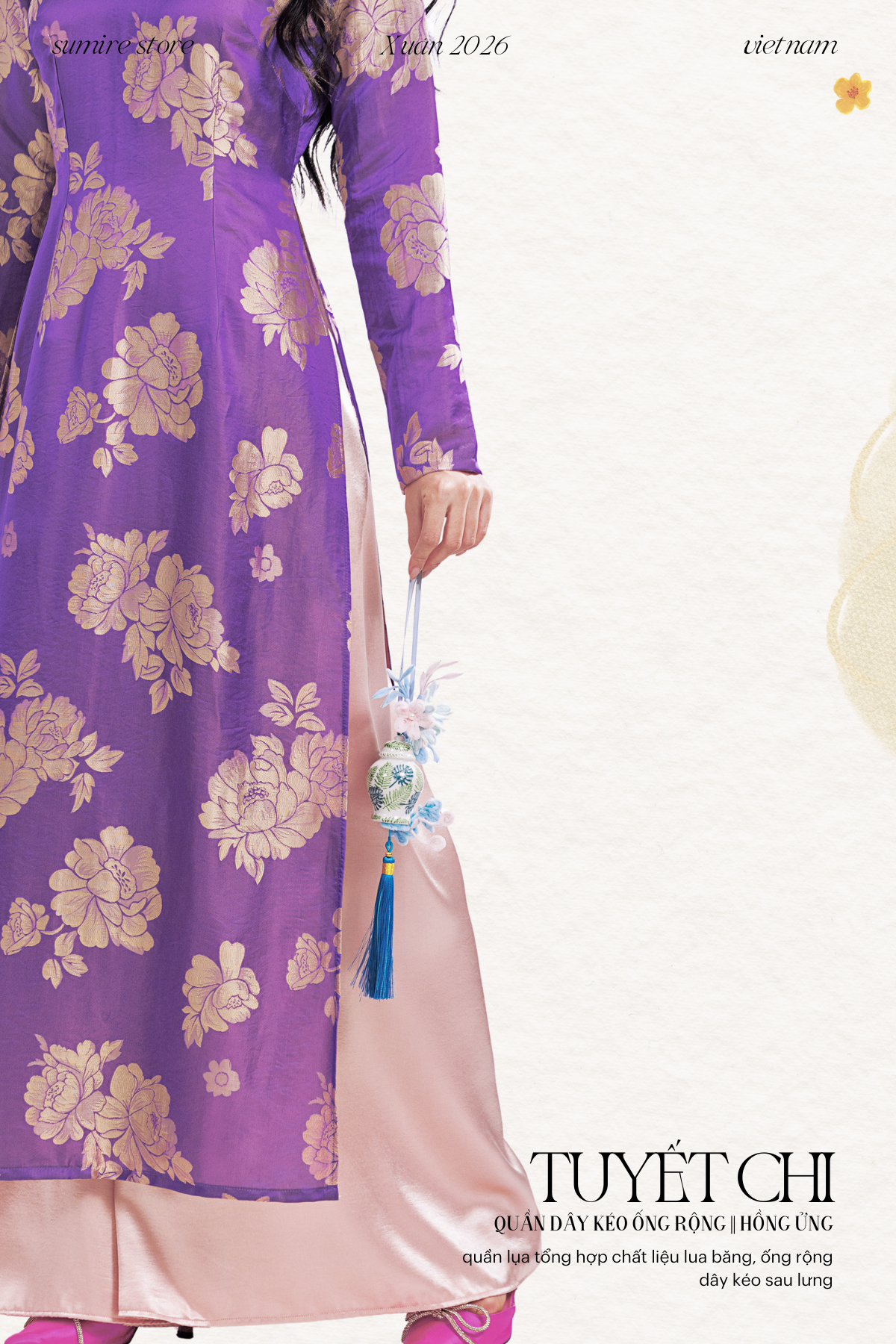 Mang theo niềm say mê thiết kế ra những bộ trang phục cách tân & phụ kiện thủ công ứng dụng nhưng vẫn giữ được những nét đẹp của trang phục truyền thống và hoa văn Việt Nam, Sumire Store hy vọng rằng sự kết hợp giữa truyền thống và hiện đại trong các sản phẩm của chúng tôi sẽ góp phần tạo thêm niềm vui và sự duyên dáng cho phong cách riêng biệt nơi bạn.