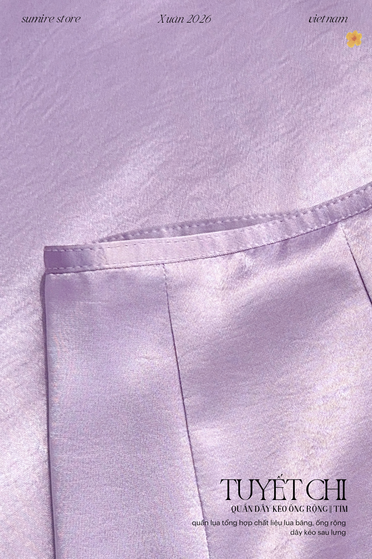 Quần Tuyết Chi - form ống rộng dây kéo, thướt tha và thoải mái khi mặc.
