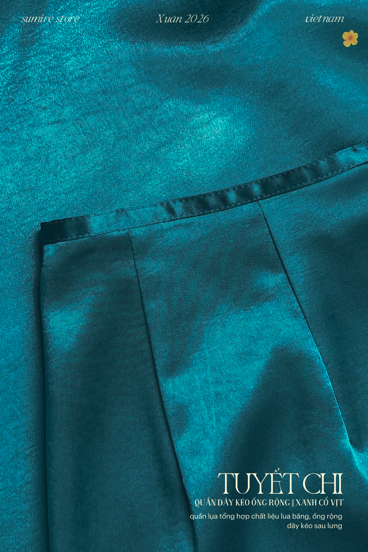 Quần Tuyết Chi - form ống rộng dây kéo, thướt tha và thoải mái khi mặc.