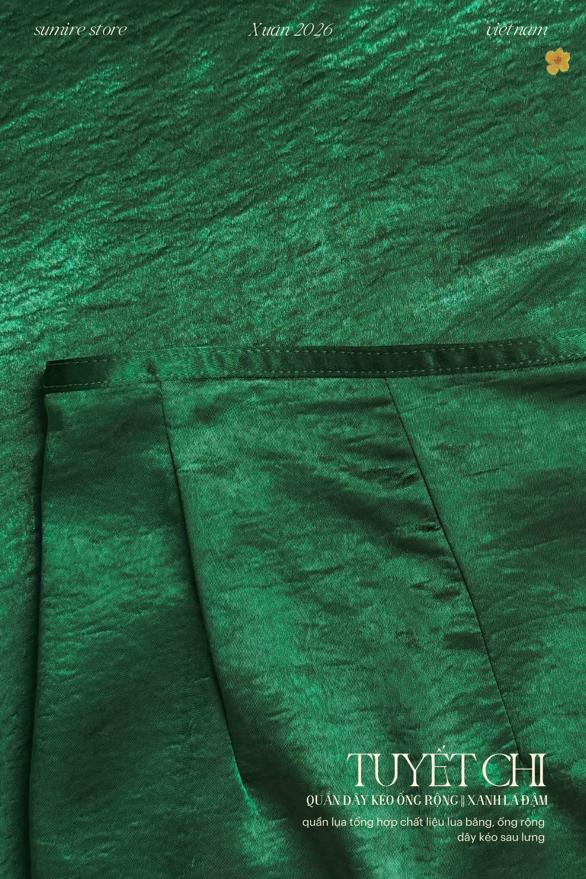 Quần Tuyết Chi - form ống rộng dây kéo, thướt tha và thoải mái khi mặc.