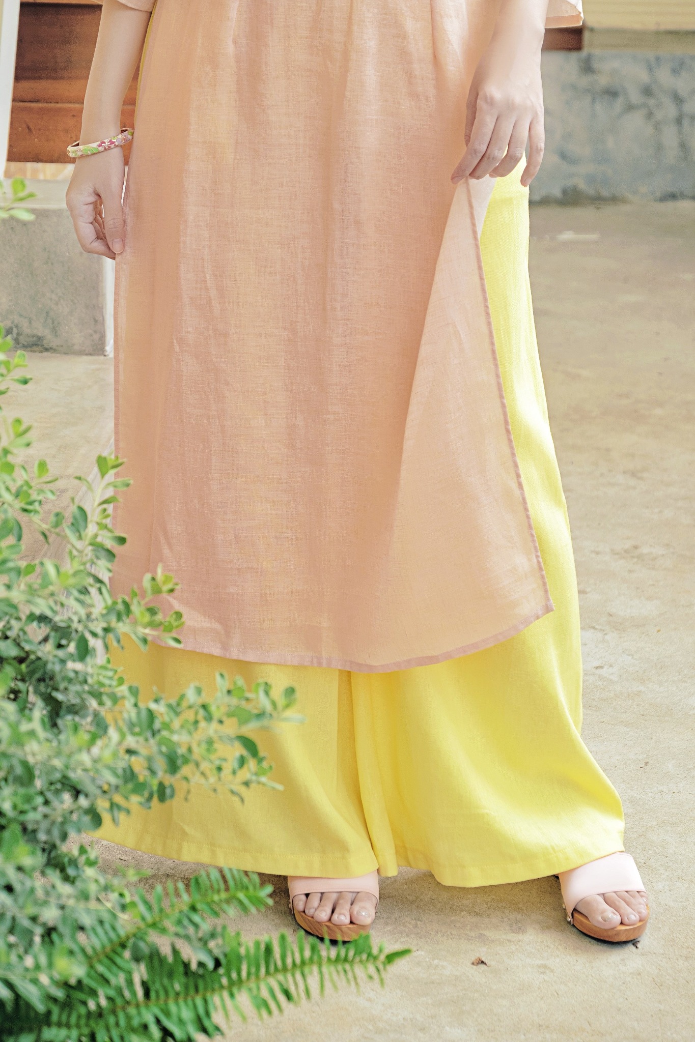 Chiếc quần Trúc Chi có form dáng ống rộng phù hợp cho mọi dáng chân, chất liệu linen nên vải tạo độ đứng dáng rất tự nhiên và đằm mình.