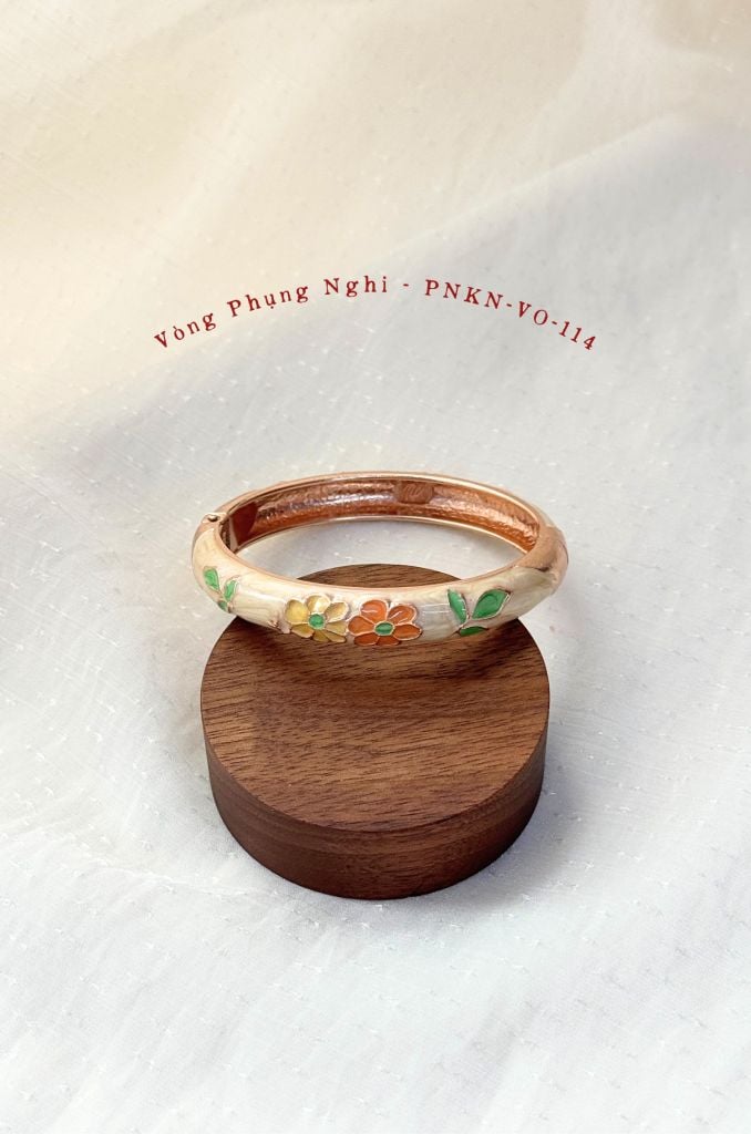Vòng tay VO-114 Phụng Nghi vàng kem hoa đôi cam vàng - 10mm